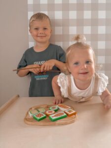 How to Play: When using a game like a Qtoys Sushi set or a shape sorting puzzle, make it a shared game. Take turns placing pieces. Introduce language like, “Here is a piece for you, and here is a piece for me.” Focus on waiting for a turn and celebrating each other’s successes. The goal isn’t just to sort, but to share the experience and the resources.