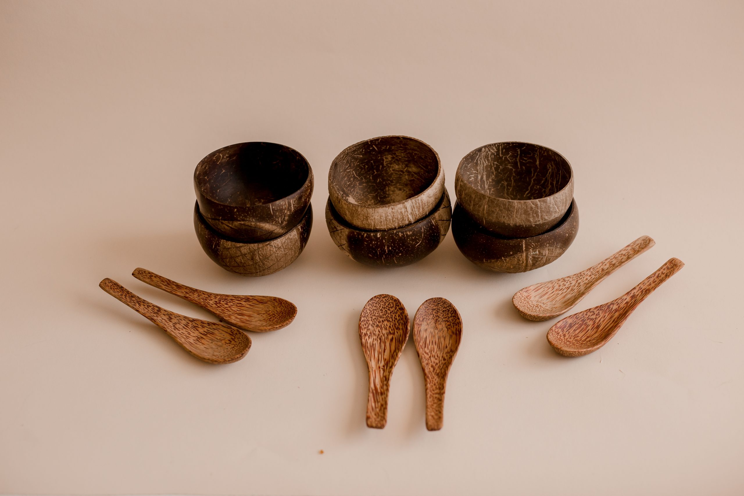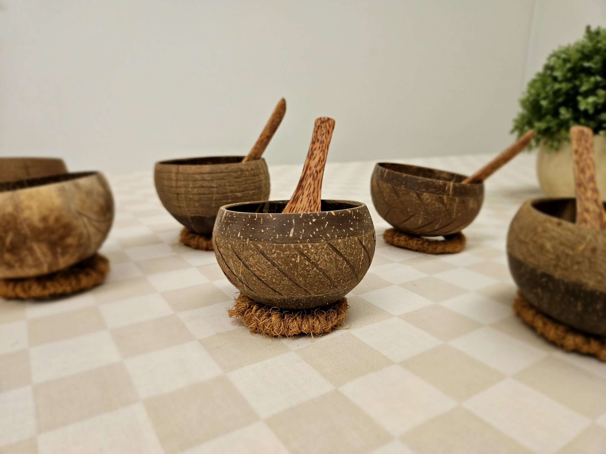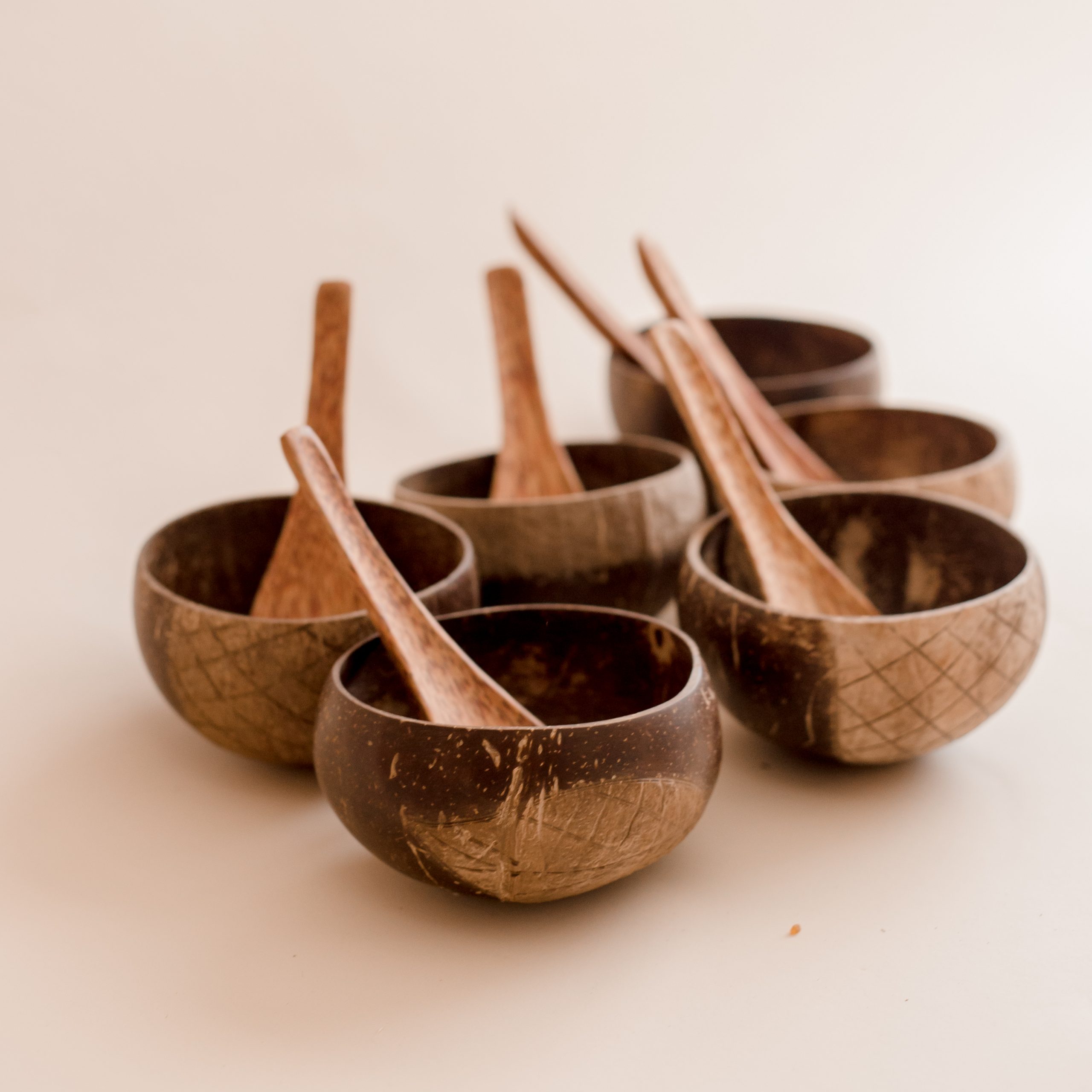 Relax and enjoy your favourite meal or desert with these handcrafted Coconut rice bowls and spoons.