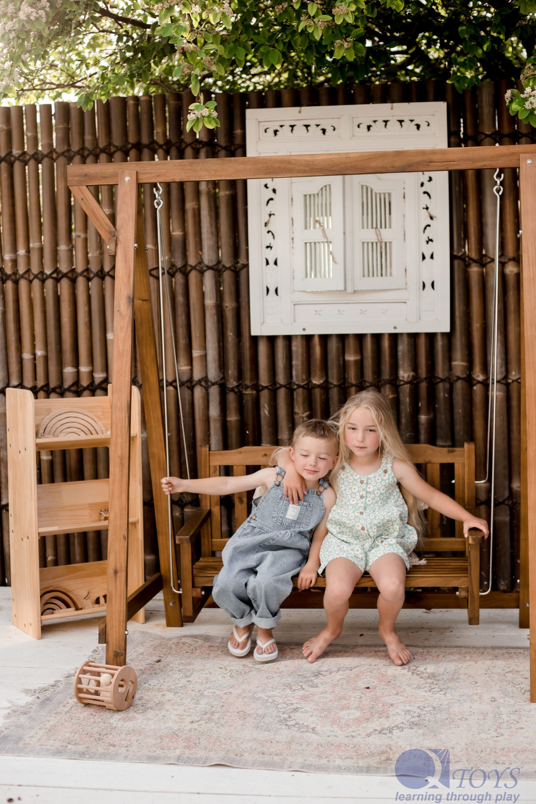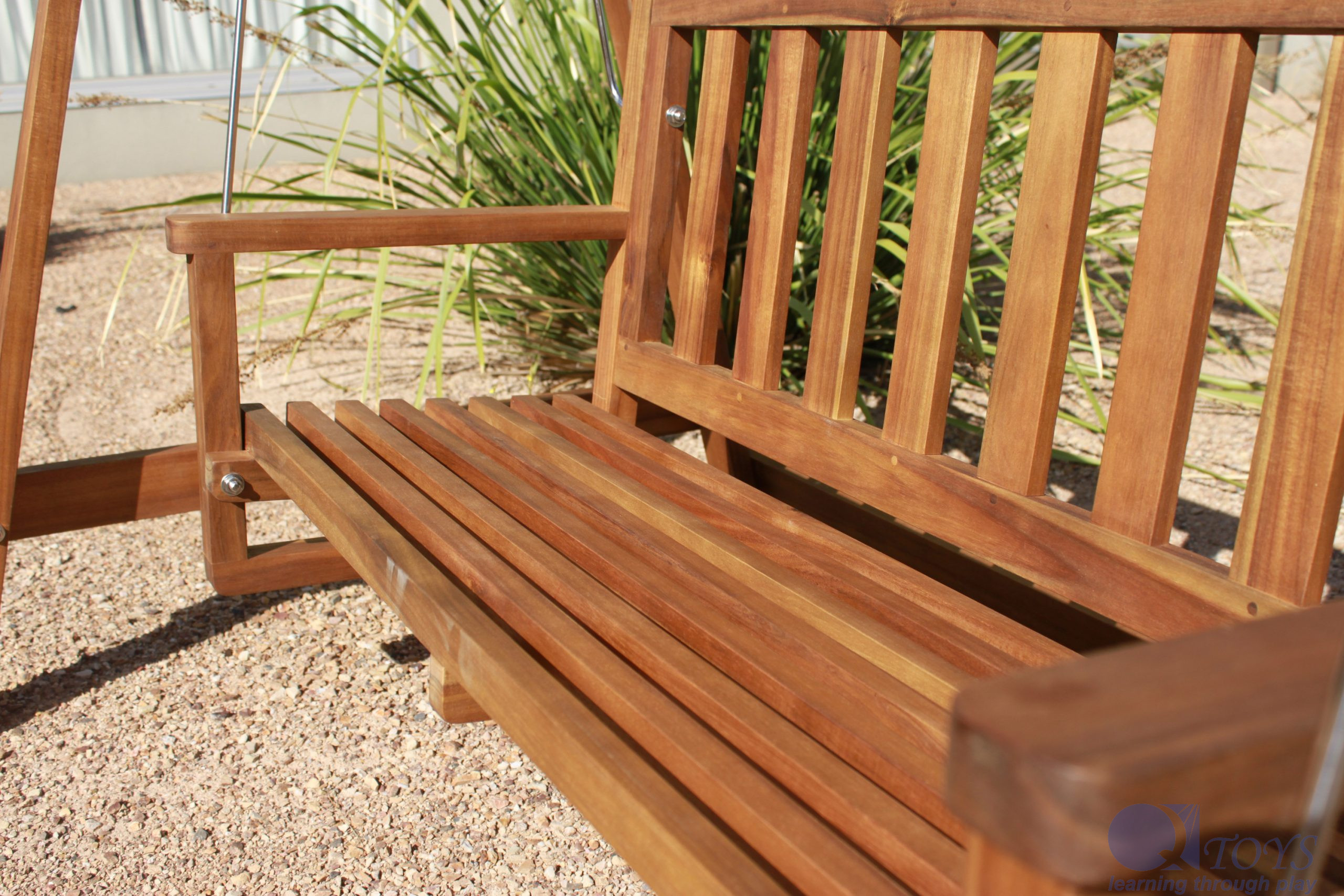 This beautiful outdoor garden swing will be a feature in any garden settings. The product features stainless poles, quality hardware and well treated hardwood. All Qtoys products are made of plantation timber using non toxic materials.