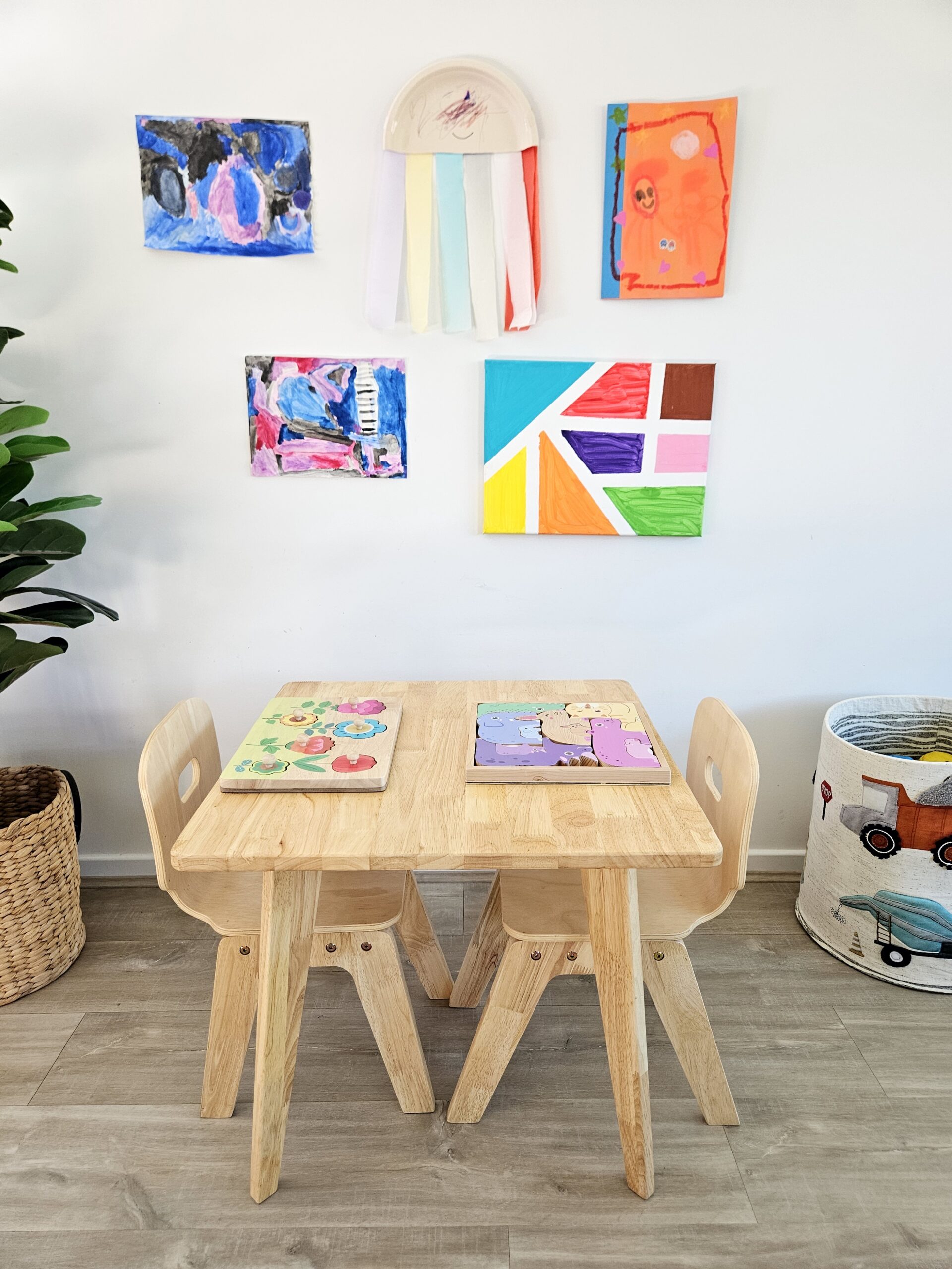 Transitioning from learning to play becomes effortless with this versatile setup. Designed for preschool-aged children, the Qtoys Danish Square Table and 2 Chairs set fosters independence, social interaction and organized space.