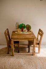 Introducing a beautiful set of Hardwood table with 2 stacking chairs. Crafted from premium Acacia wood, this set is finished with natural oil to enhance its durability and showcase the wood’s unique grain. The stackable chairs feature generously sized seats, ensuring comfort for both children and adults. As a result, this set is perfect for family gatherings, study sessions, or casual dining.