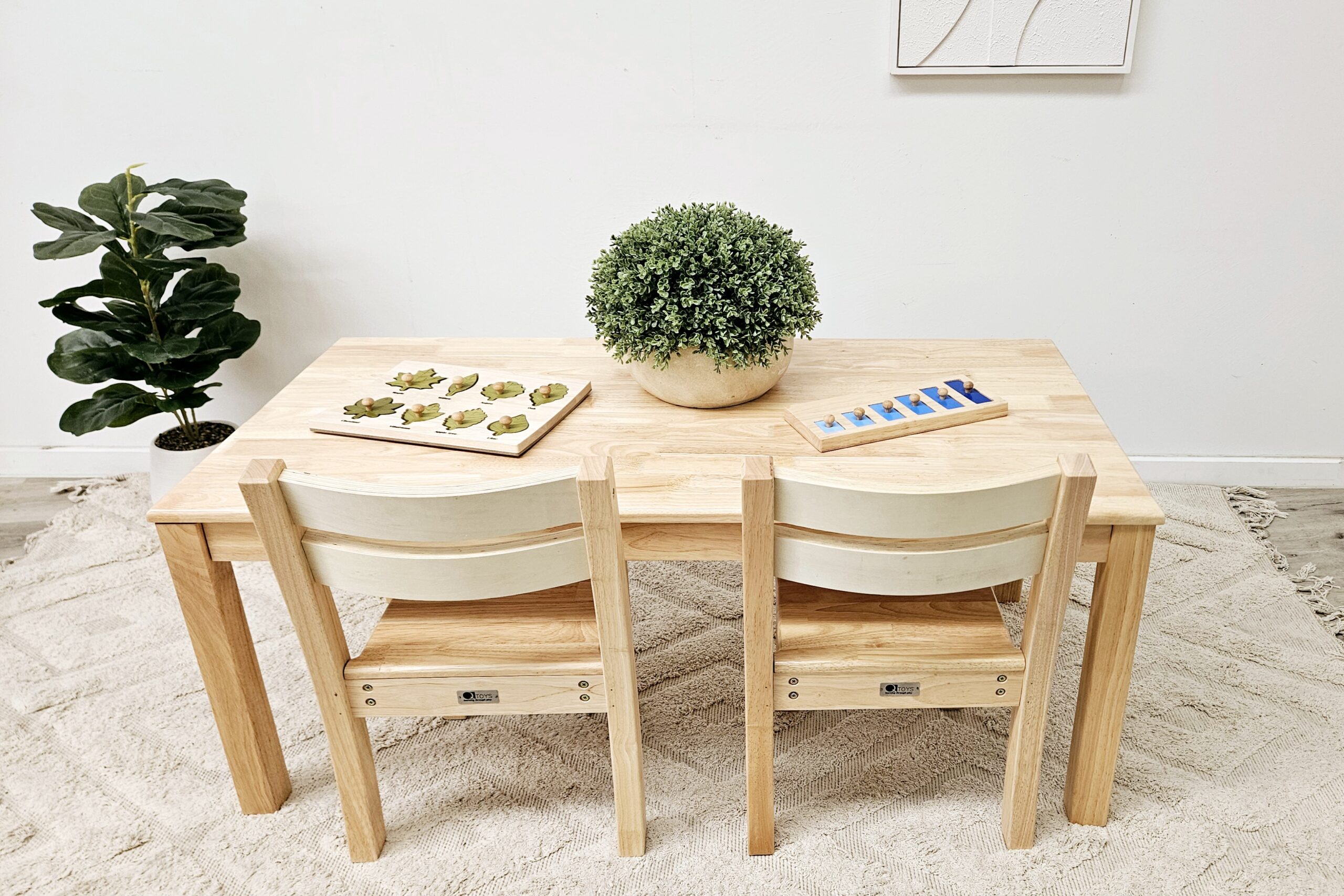 Upgrade your classroom or family dining area with our deluxe Solid Rectangular Table with 2 Stacking Chairs set. Designed for versatility and comfort, this deluxe table is perfect for accommodating multiple children or a big family with two or three kids. With its generous size and fine oiled finish, it adds a touch of elegance to any space while providing ample room for various activities and meals.