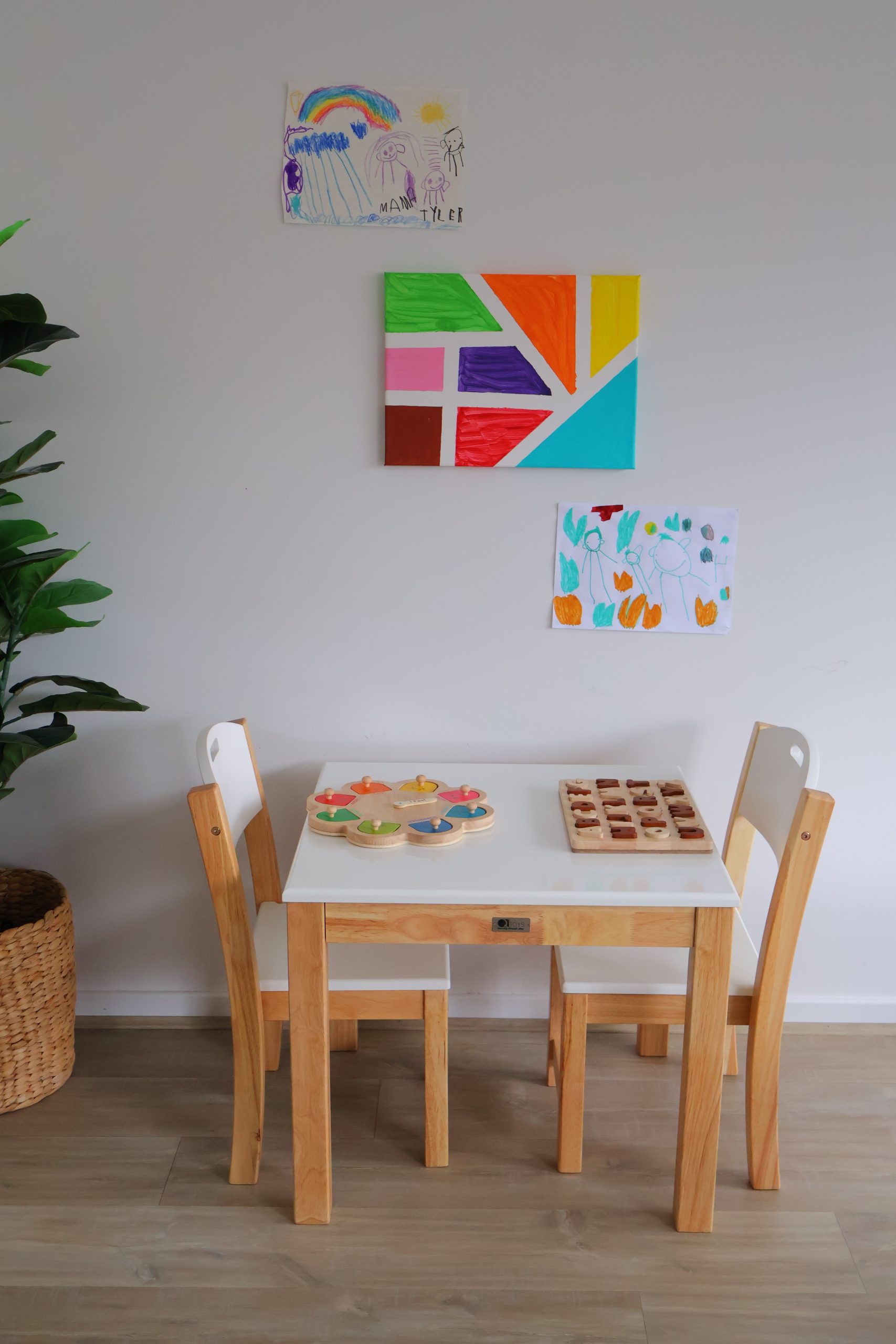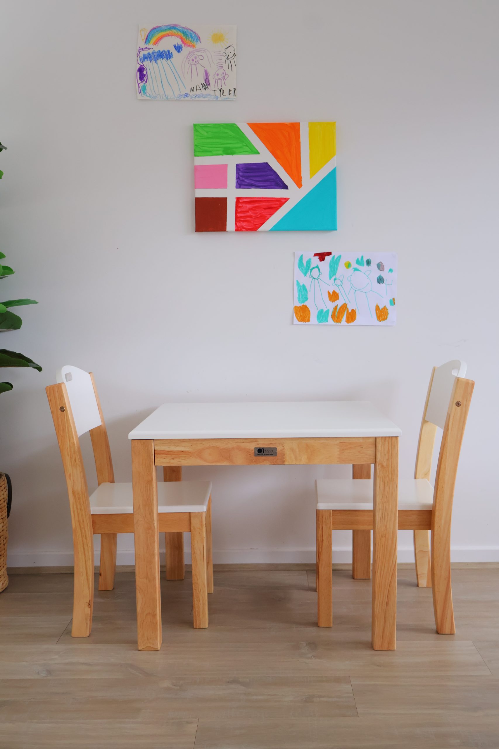 The White Top Timber Table with 2 Matching Chairs is a stunning addition to any home or play area. This beautiful set includes a hardwood table with a white top finish and two matching stackable chairs, offering both style and functionality. Crafted from Acacia hardwood and painted for a sleek look, this set is sure to enhance any space with its timeless appeal. The stackable chairs feature a spacious seat, providing comfort for both children and adults.