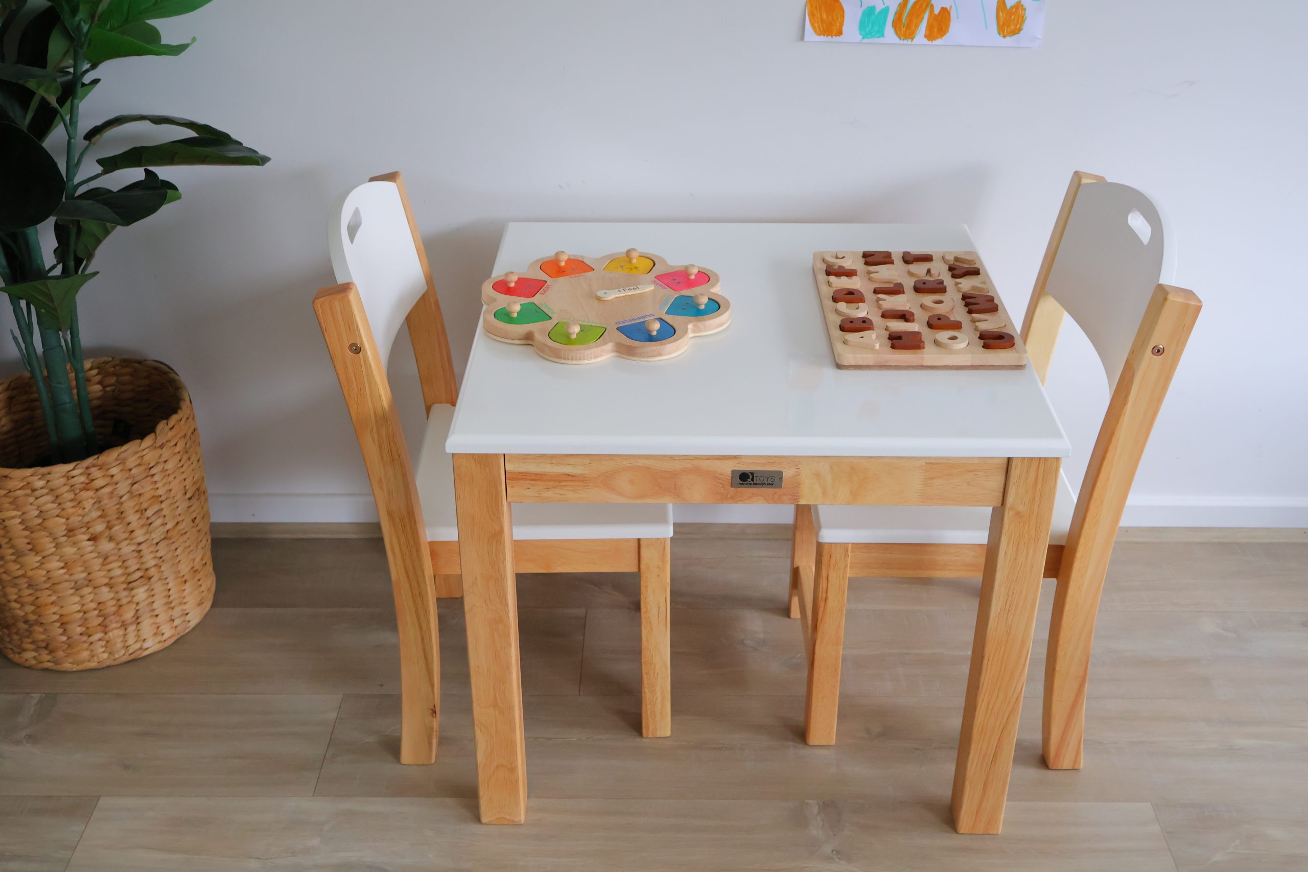 Crafted from Acacia hardwood, known for its durability and strength, the White Top Timber Table and Matching Chairs are built to last. Whether used for family meals, playtime activities, or creative projects, this set can withstand everyday use while maintaining its stylish appearance. The stackable chairs offer flexibility in seating arrangements, making them ideal for homes, classrooms, or playrooms.