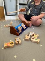 The Qtoys Fishing Game is an interactive, hands-on toy that brings fun and learning together in a simple, engaging way. This set includes two sturdy fishing rods, ten vibrant fish with numbers from 0 to 9 printed on the back, and a wooden pond to place the fish in. The objective is to use the fishing rod to “catch” each fish, creating a fun and rewarding challenge for young children.