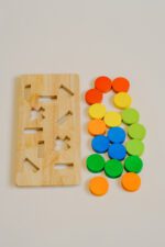 Children will love sorting and dropping colorful wooden coins into the tray’s slots, which helps build essential skills like hand-eye coordination, dexterity, and finger strength. At the same time, they’ll engage in colour recognition and sorting exercises that promote categorization, memory, and early math readiness. The insert promotes focused play, while the sturdy timber tray ensures a stable and safe environment.