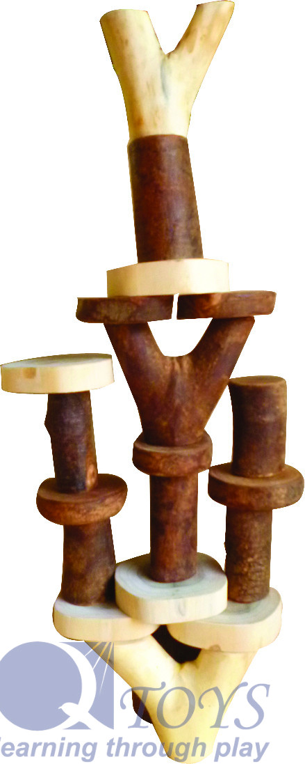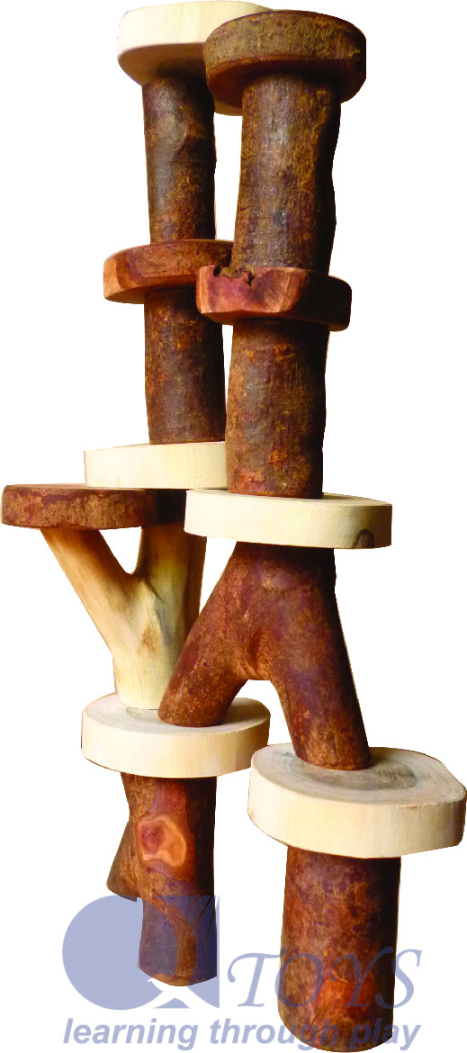The set is finished with natural oil, housed in a cotton bag.  All Qtoys are made of plantation timber using child-safe non-toxic materials.