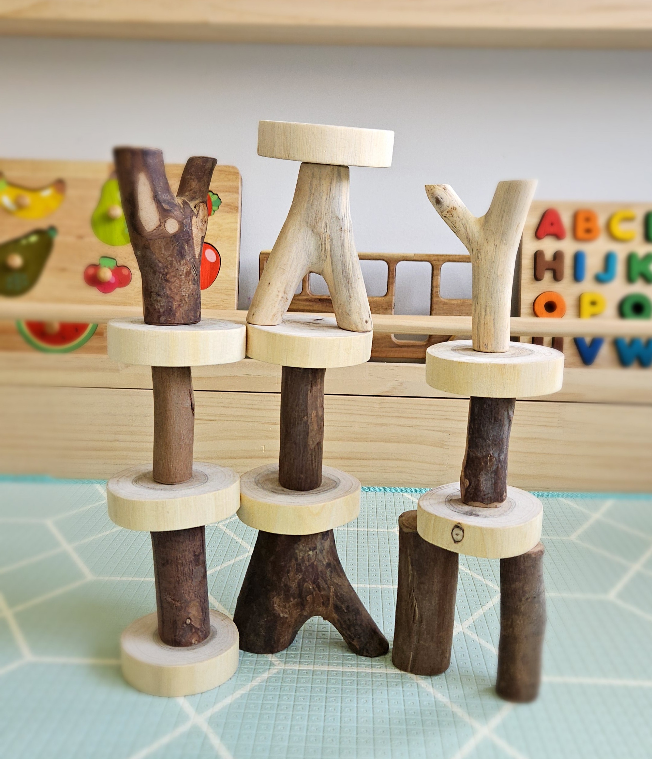 The wood used in our Balancing Tree is finished with a non-toxic plant-based oil, ensuring a long-lasting product that is safe for your children to use. This natural finish not only enhances the beauty of the wood but also provides a smooth and tactile surface for children to explore.