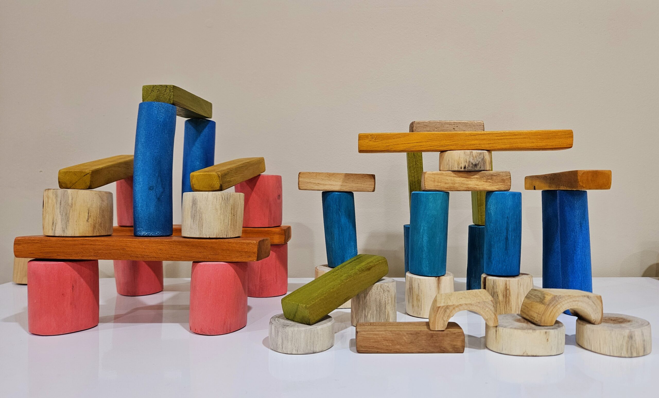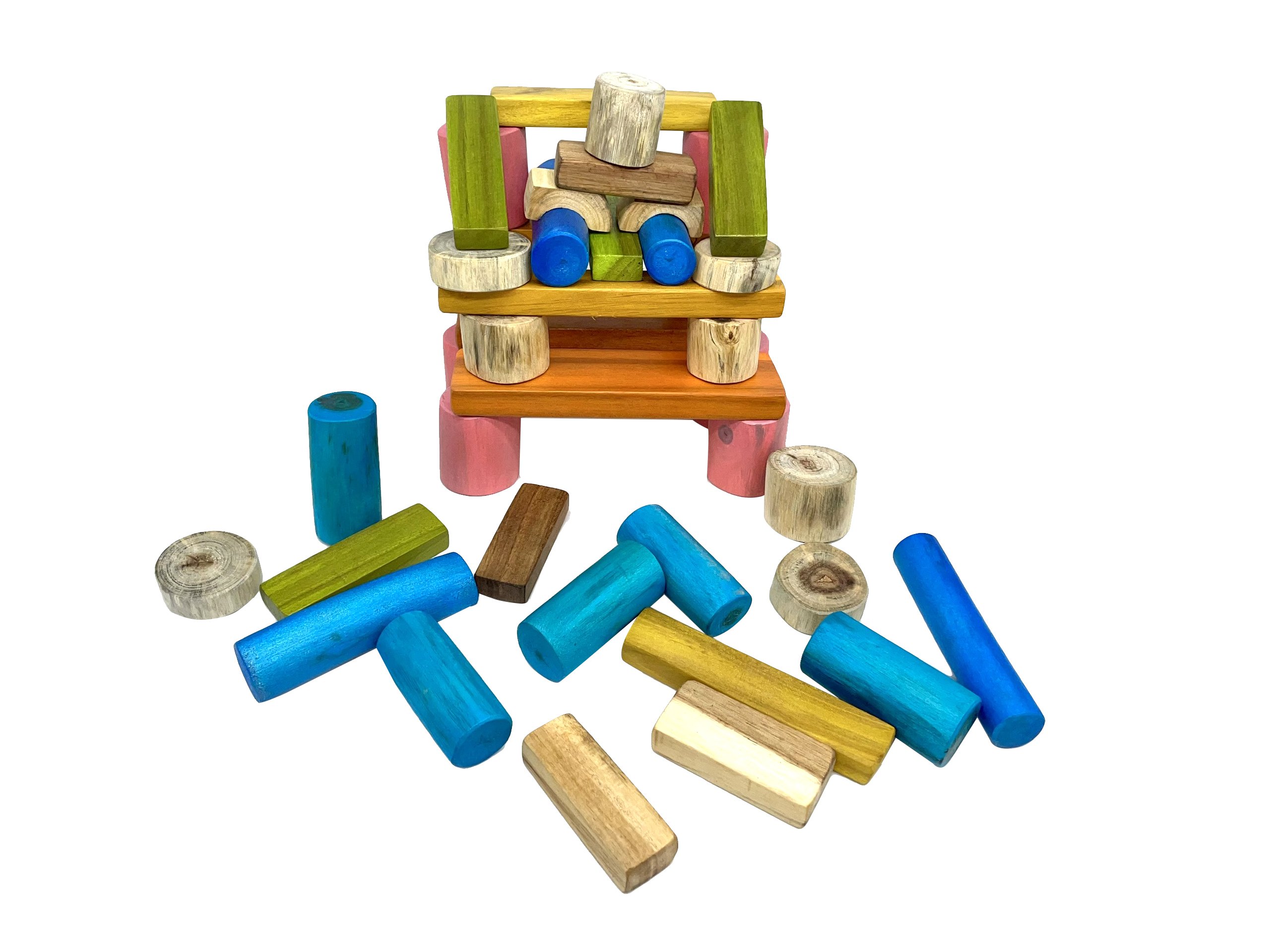 These tree blocks inspire endless possibilities. Children can construct anything their minds dream up, from simple structures to complex creations. The range of shapes and sizes in the set ensures that no two creations are ever the same, keeping playtime exciting and fresh. The careful craftsmanship involved in creating this block set sets it apart. Artisans sand each piece smooth to ensure safety and a pleasant tactile experience. They then finish the blocks with beeswax and natural oils, which not only protect the wood but also bring out its natural beauty. This attention to detail ensures that children can play safely while enjoying durable and long-lasting blocks.