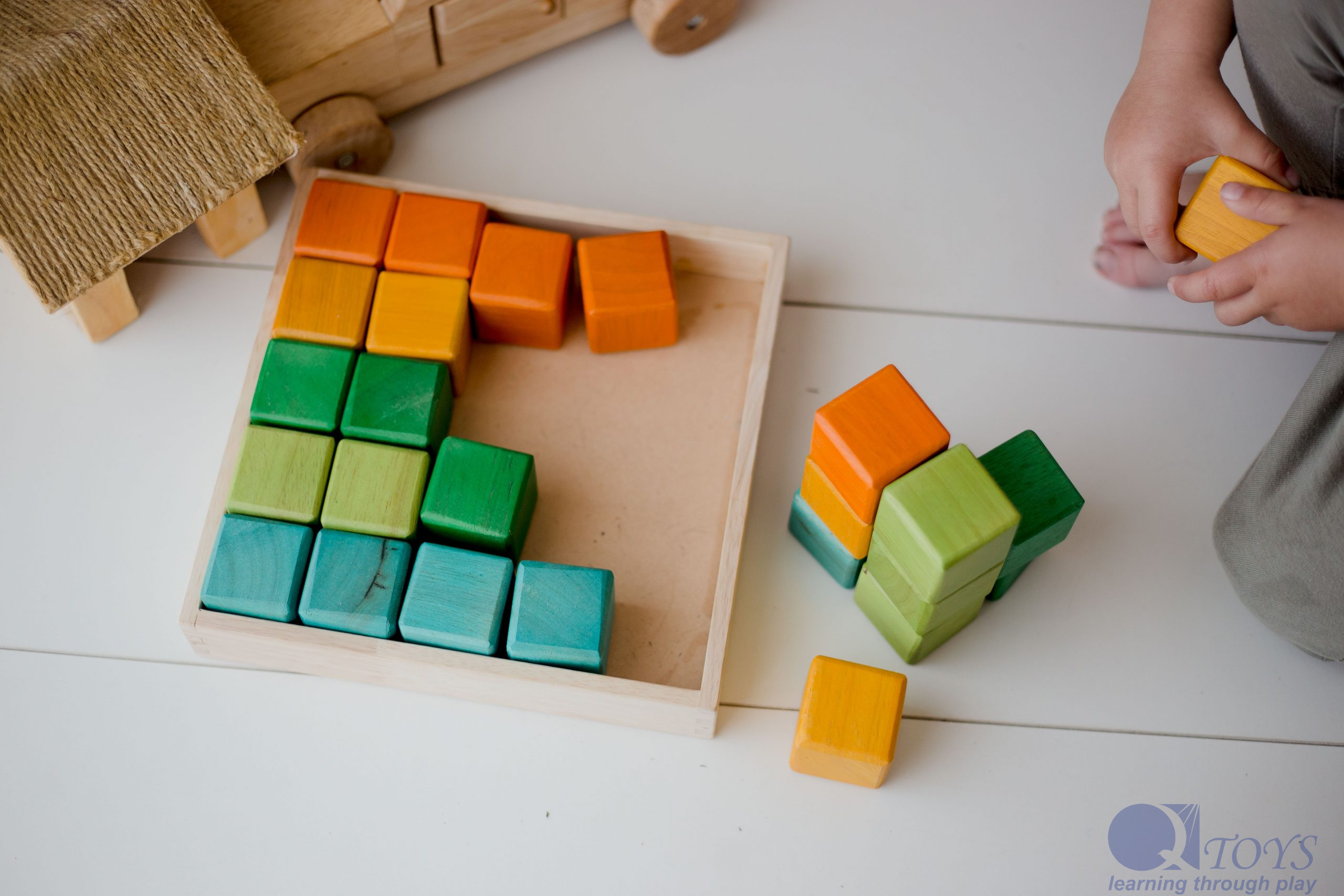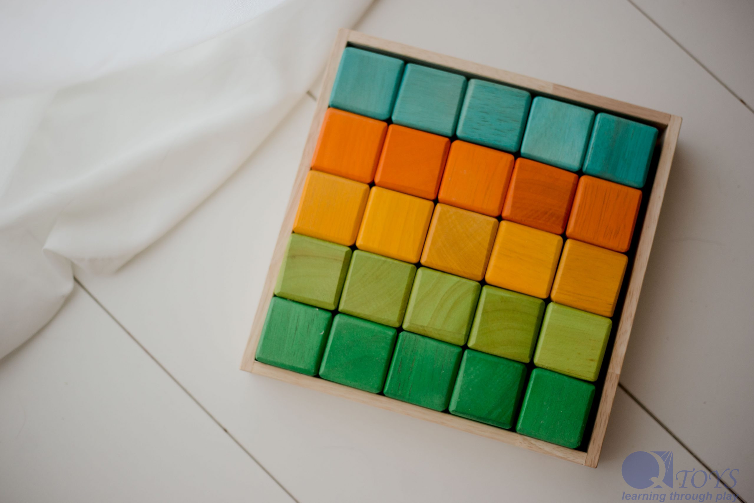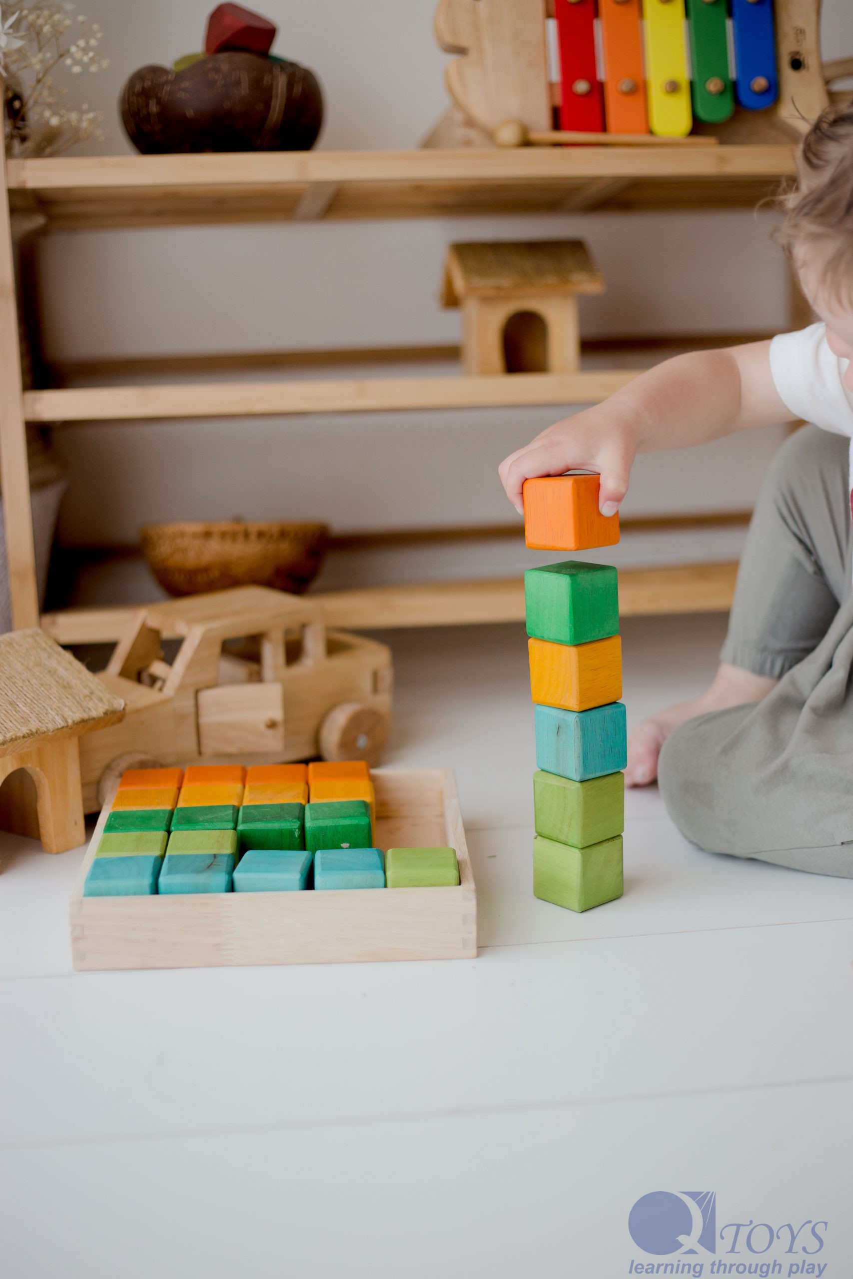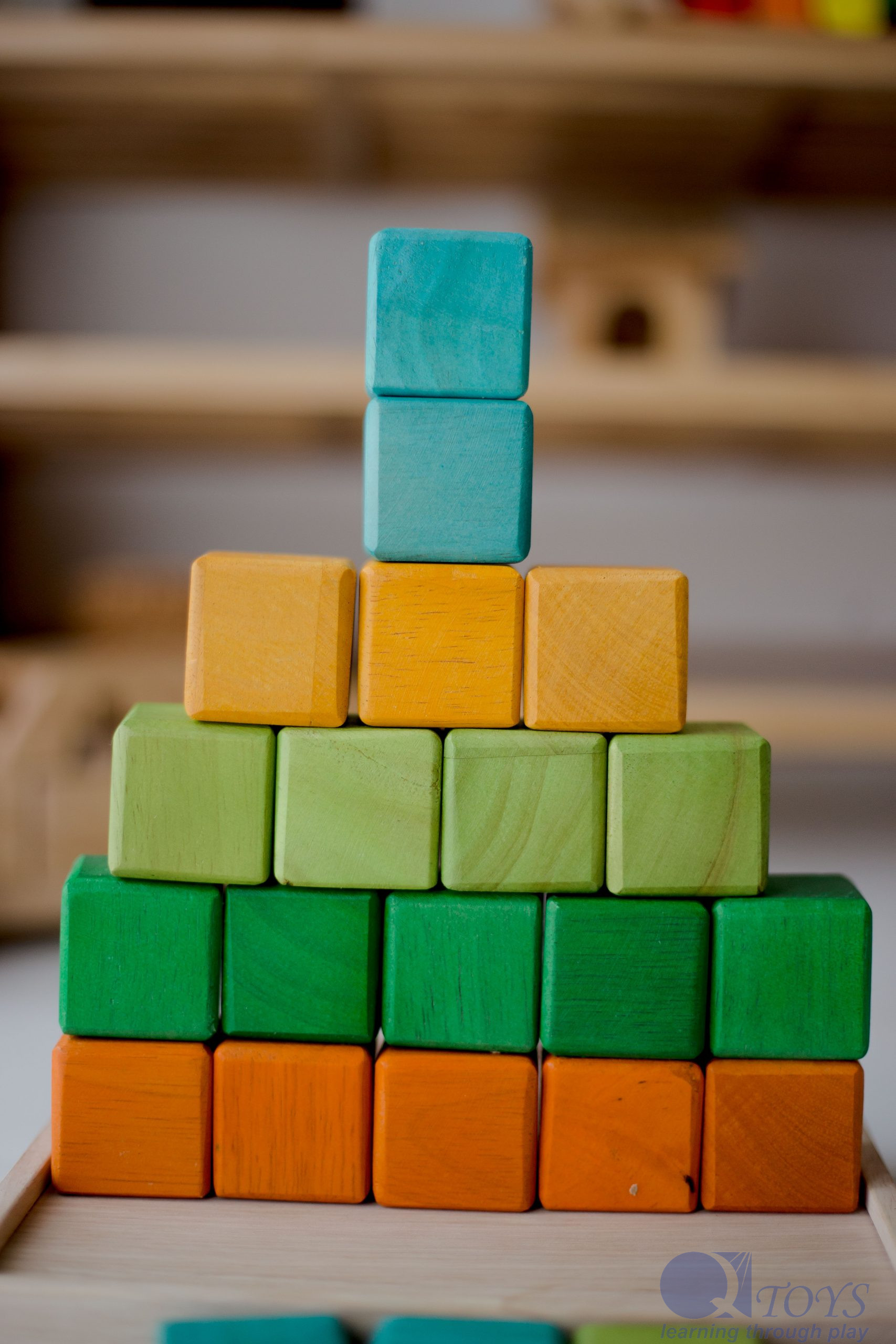A simple yet creative first coloured block set to spark imagination. This set of 25 cube blocks will have your little engineer exploring balance and gravity through play. They are perfect for stacking and balancing activities.