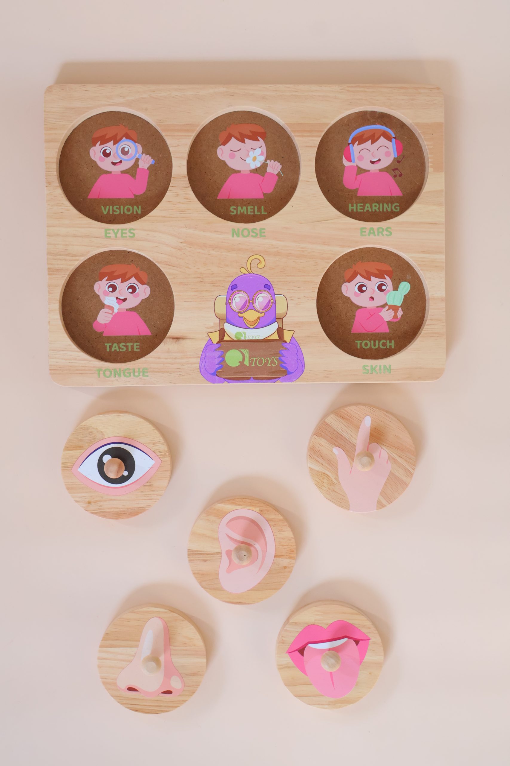 Each beautifully crafted puzzle piece represents one of the five senses, helping children connect real-world experiences to visual and tactile learning. As they match and place the pieces, little learners strengthen fine motor skills, problem-solving abilities, and cognitive connections. The accompanying story book brings each sense to life with simple, engaging narratives that encourage discussion and discovery.