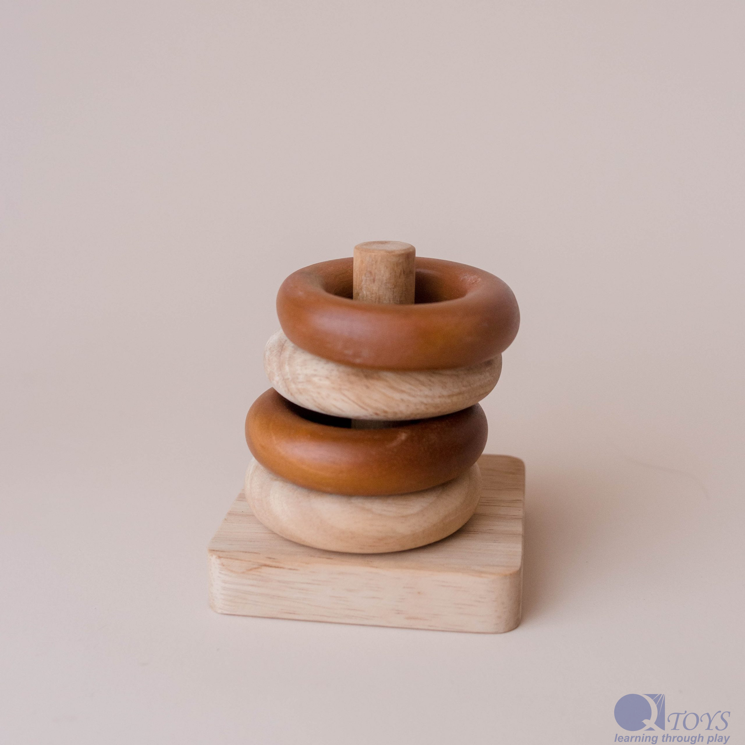 This wooden ring stacking toy is an excellent choice for children who are learning to develop their hand-eye coordination skills. The rings are easy for babies and toddlers to grab, thanks to their polished rounded edges. The toy comes with four rings that are all the same size, which makes it easier for children to stack them in the correct order.