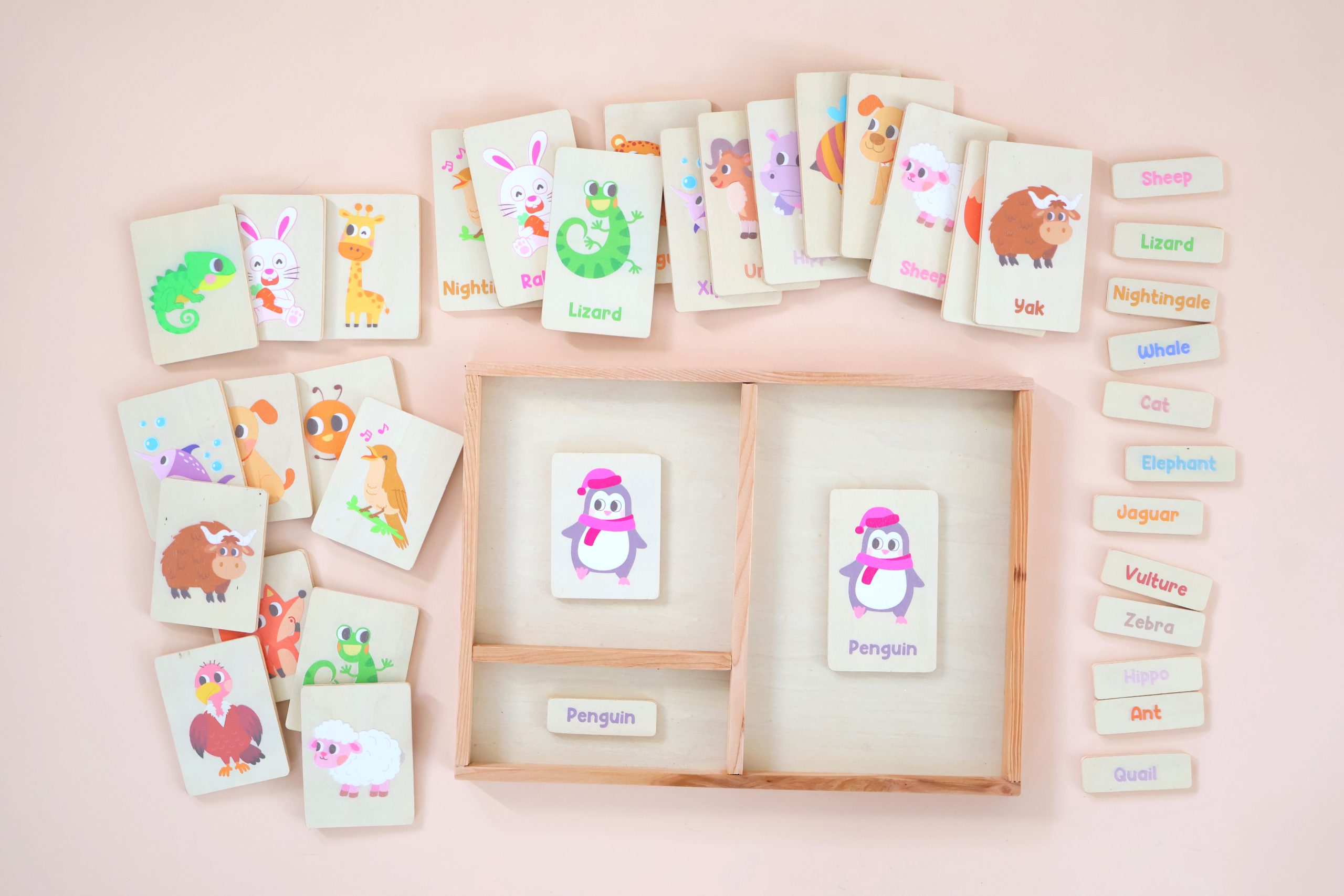 Introducing the Qtoys Montessori Tray for Language Cards, a thoughtfully designed wooden tray that enhances the organization and presentation of language learning materials. This versatile tray is crafted from durable and natural wood. It is not only a functional tool for Montessori classrooms and home learning environments but also a beautiful addition to any educational space.