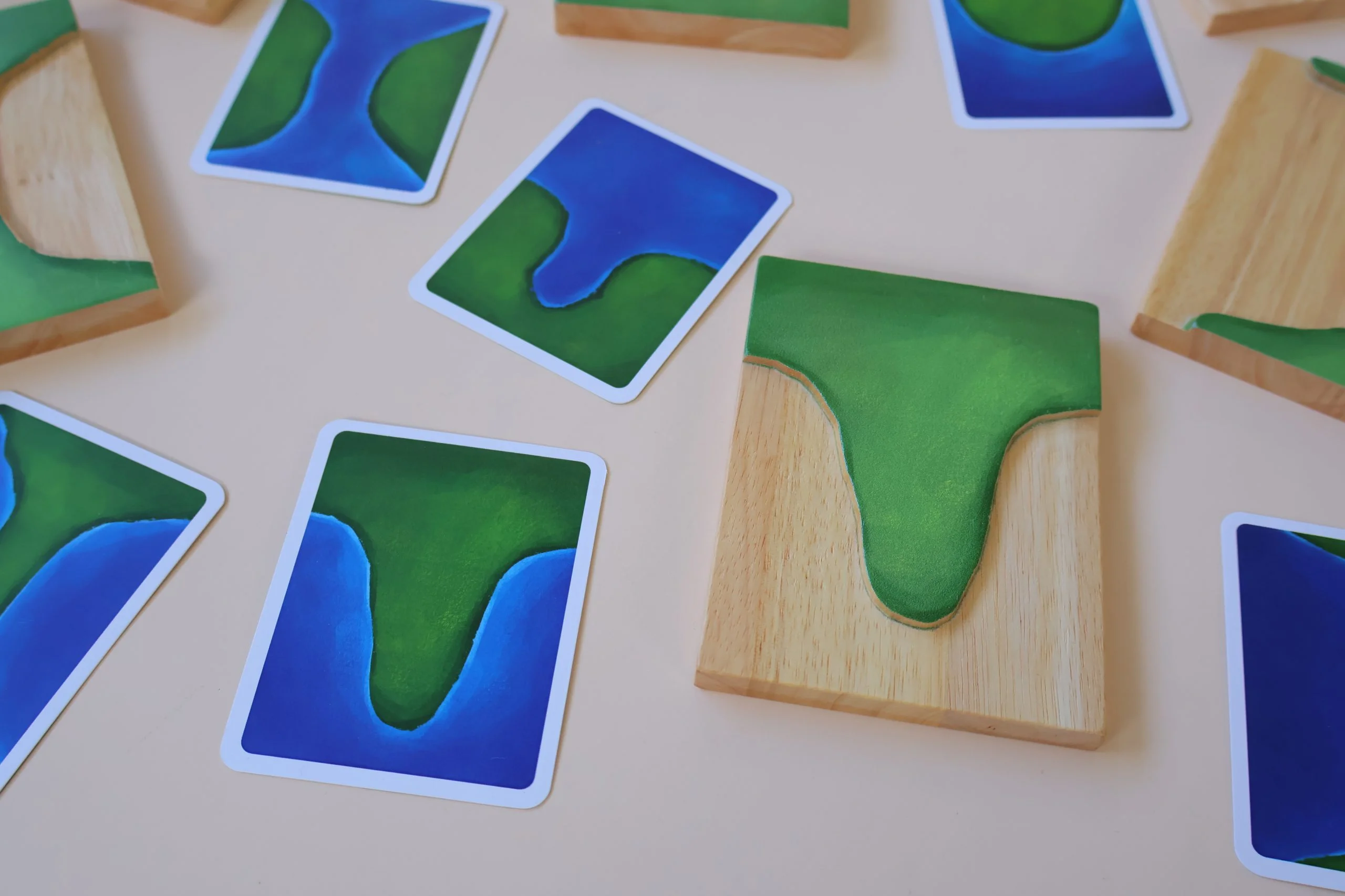 In addition, this set aligns perfectly with Montessori principles, encouraging independent exploration, self-directed learning, and sensory discovery. Children can match the wooden forms with the corresponding cards, practice naming each feature, and even expand the activity by finding real-life examples on maps or globes.