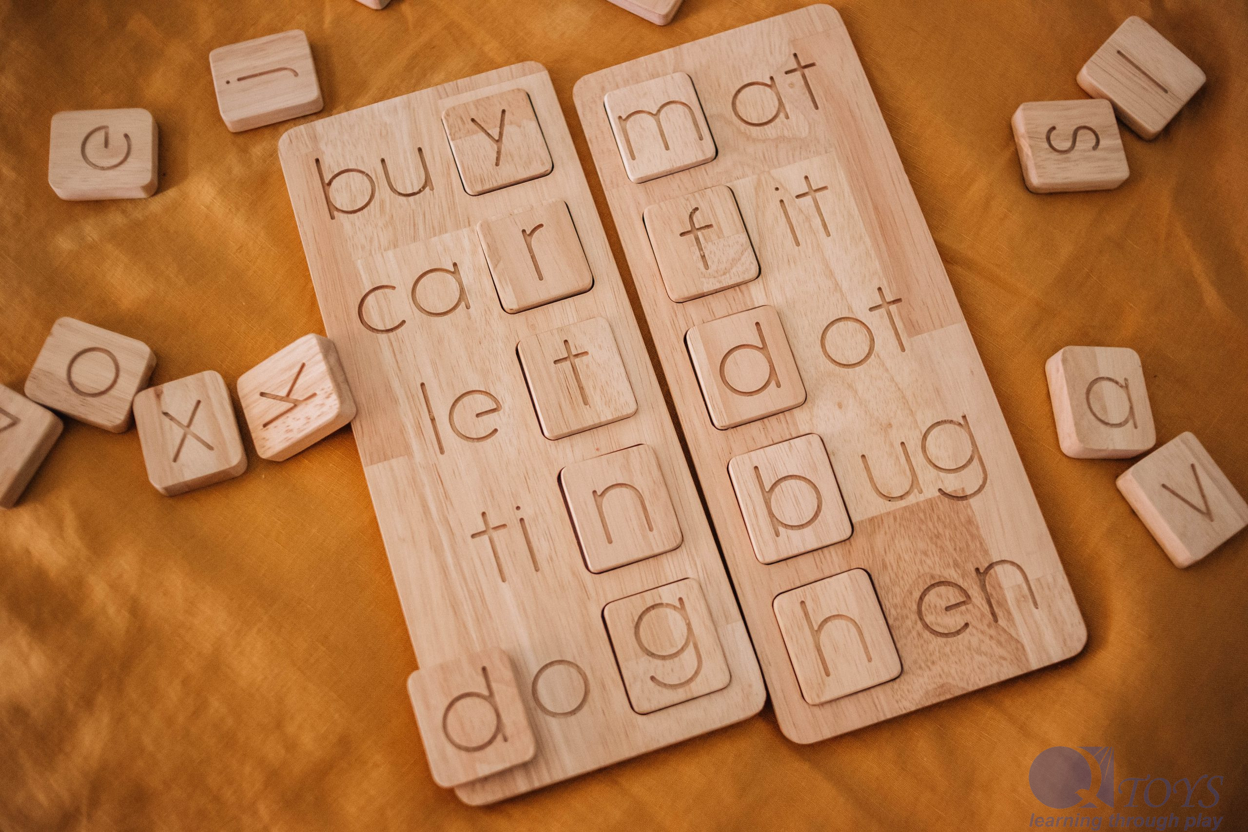 These simple but beautiful Wooden boards are designed to help children learn how to blend and segment letters to create CVC (Consonant, Vowel, Consonant) words in a fun and inviting way.