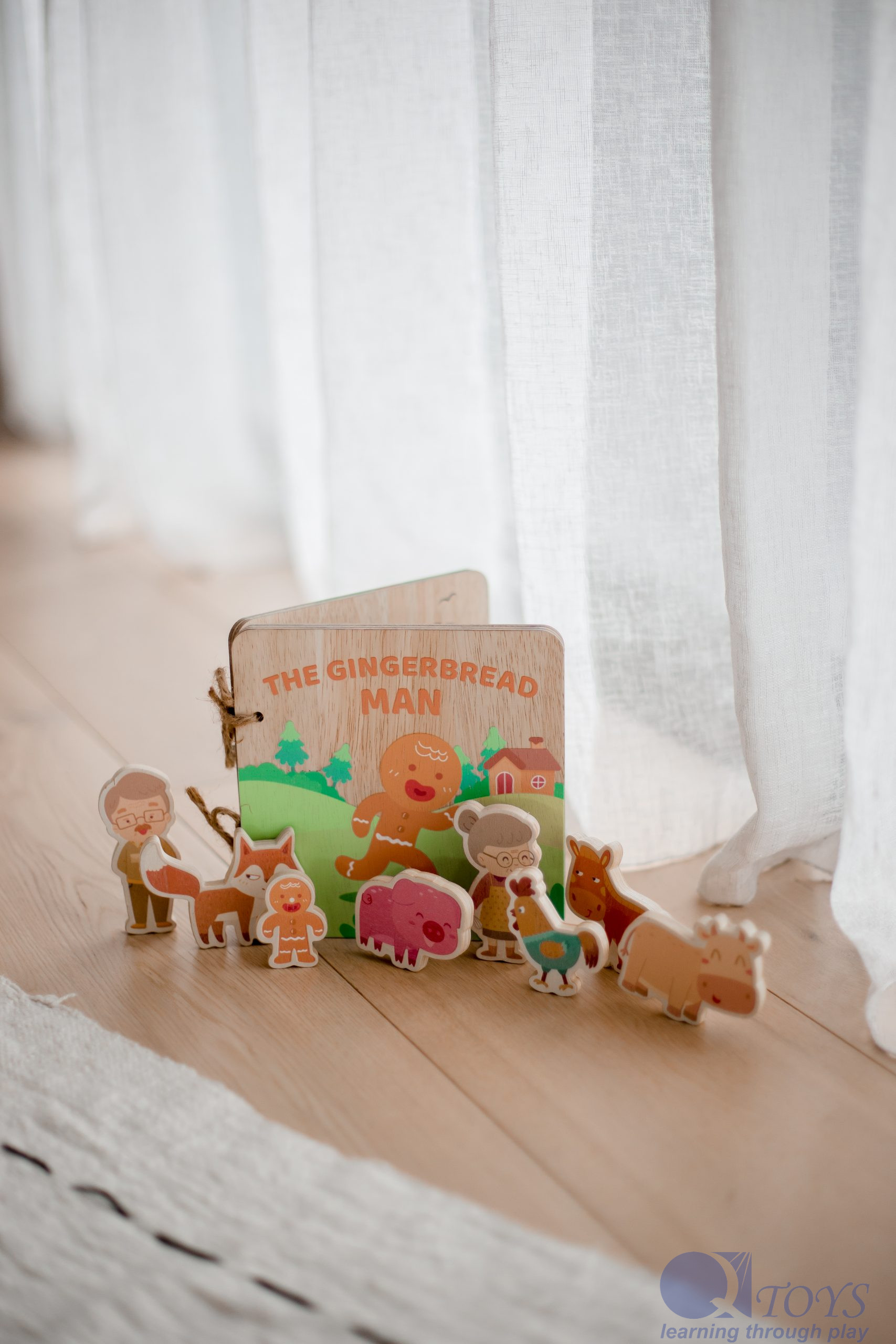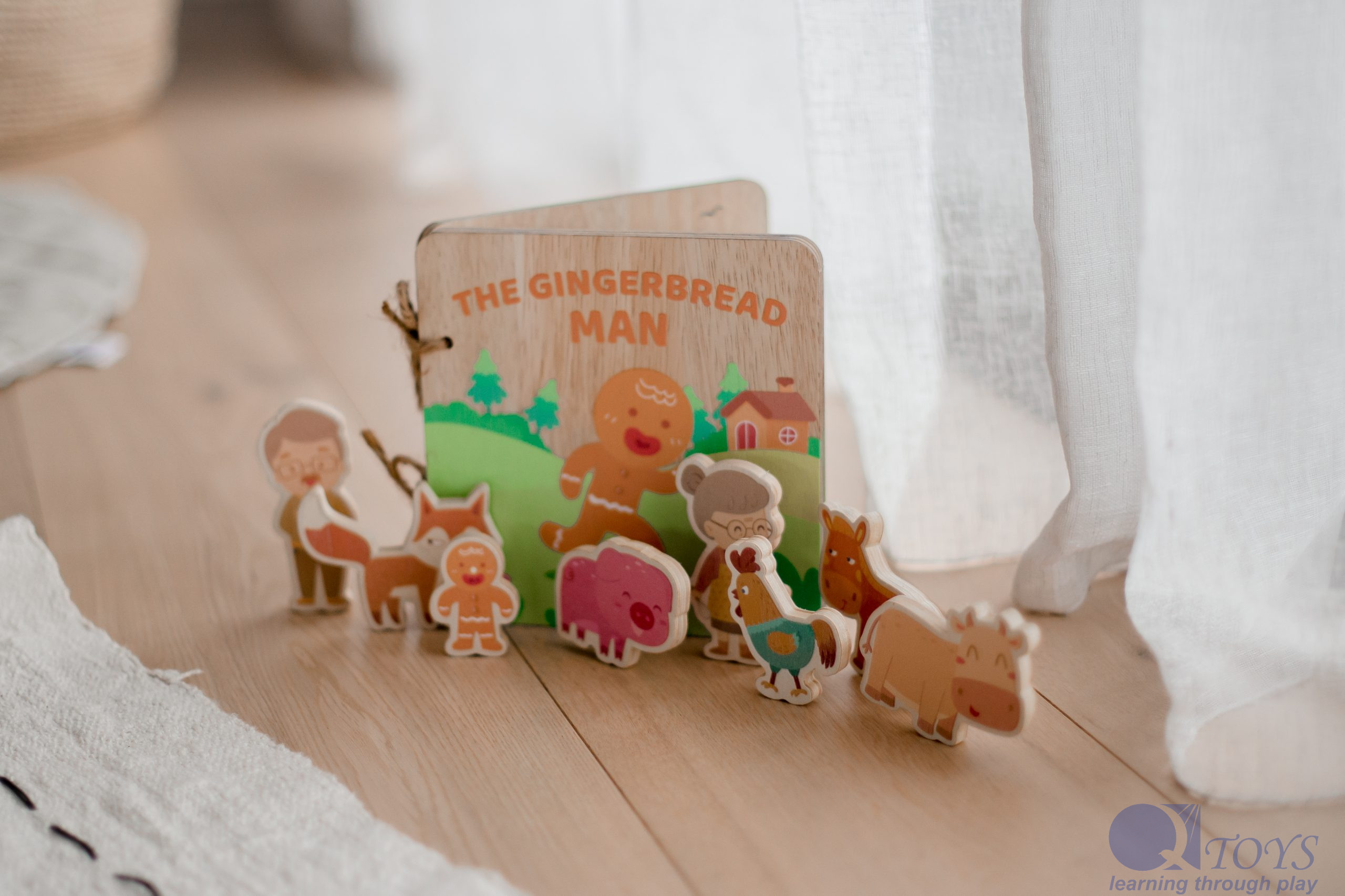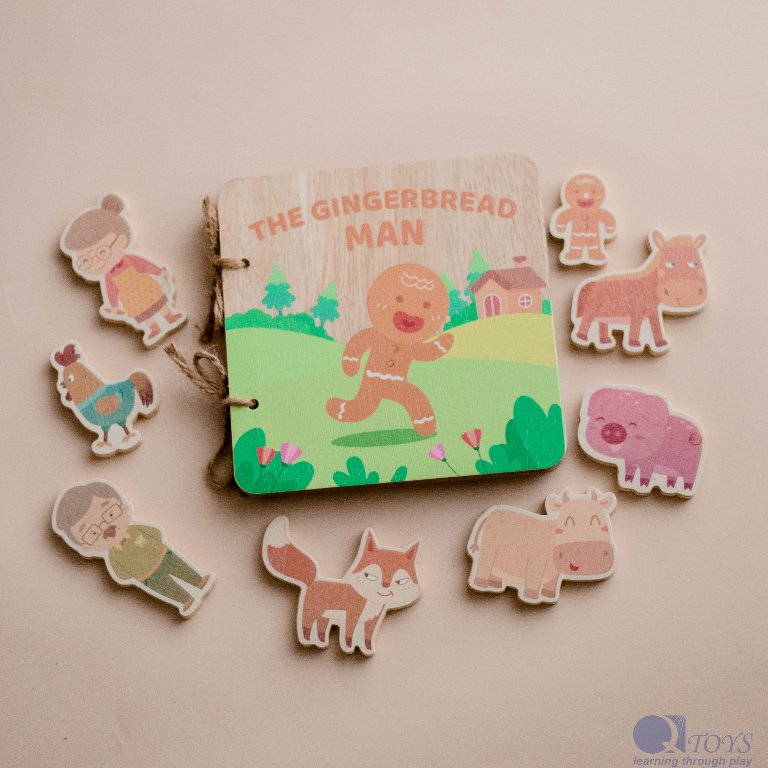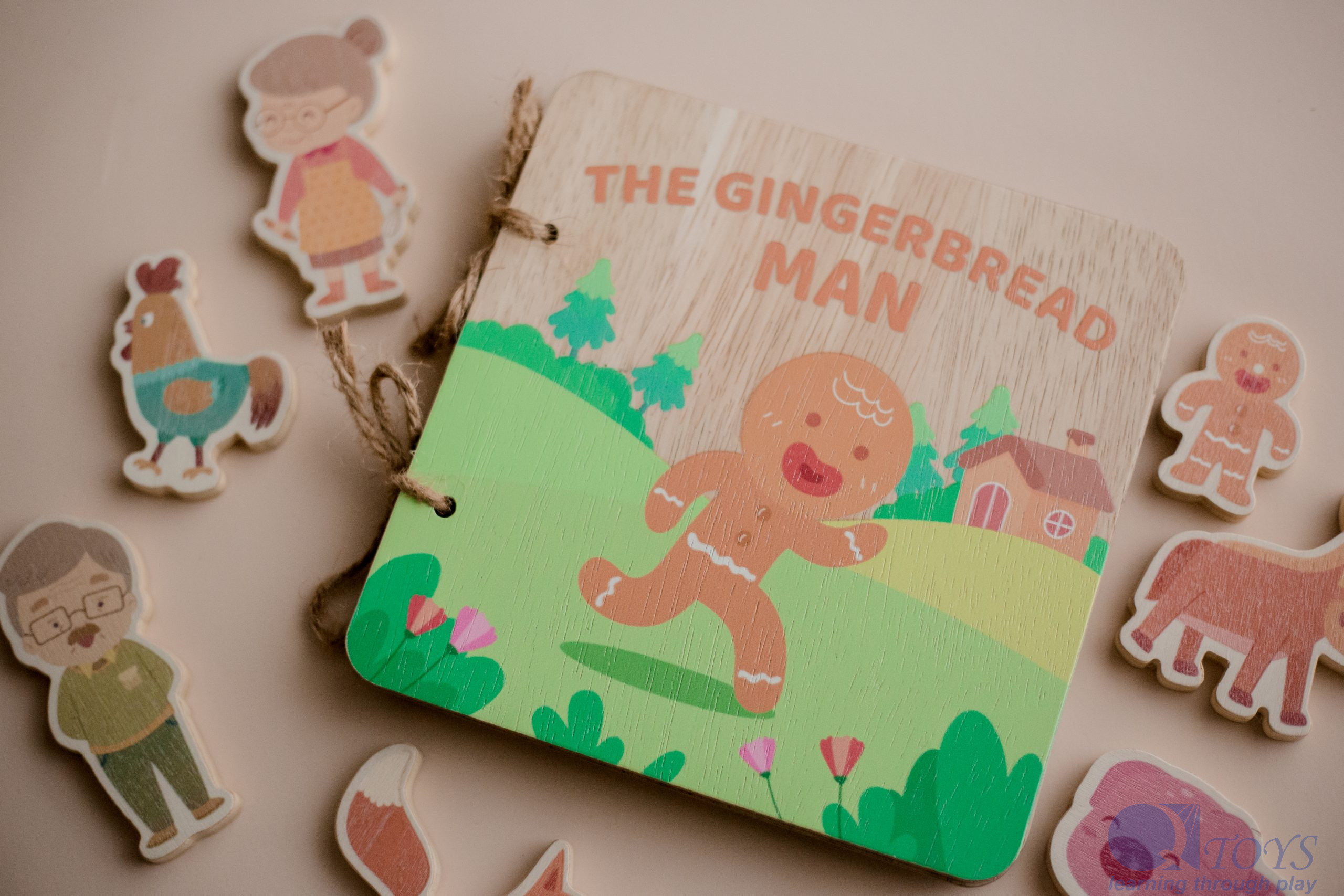 Introducing the enchanting Gingerbread Man Book —a cherished tale that captures the hearts of children everywhere. This delightful interactive book unfolds over five double-sided pages, each depicting scenes from the beloved story of the Gingerbread Man. Complete with eight charming wooden pieces—including the little old lady, the little old man, the mischievous gingerbread man, and an array of friendly animals such as the cow, pig, horse, chicken, and fox—this book brings the classic tale to life in a hands-on, engaging format.