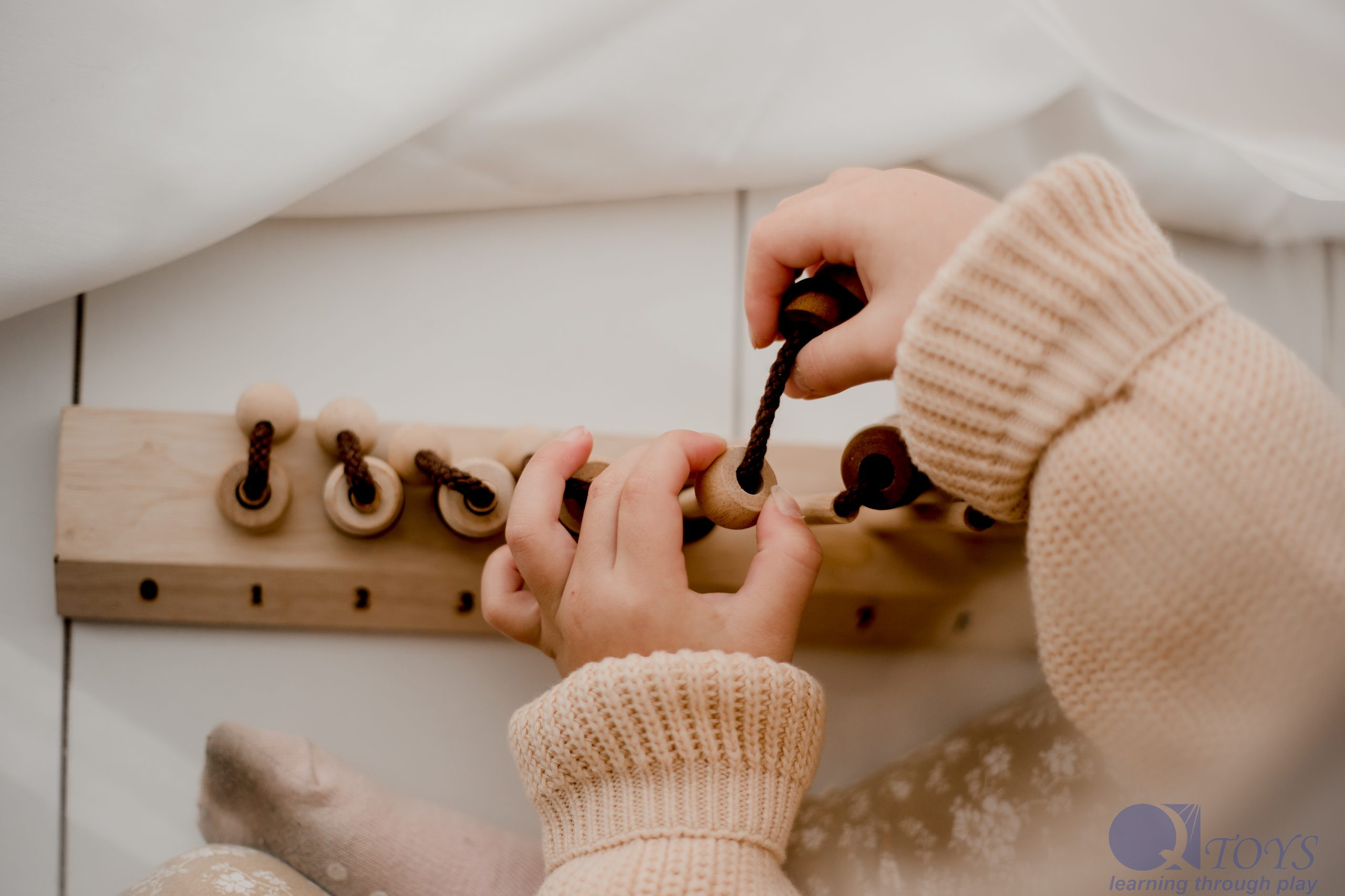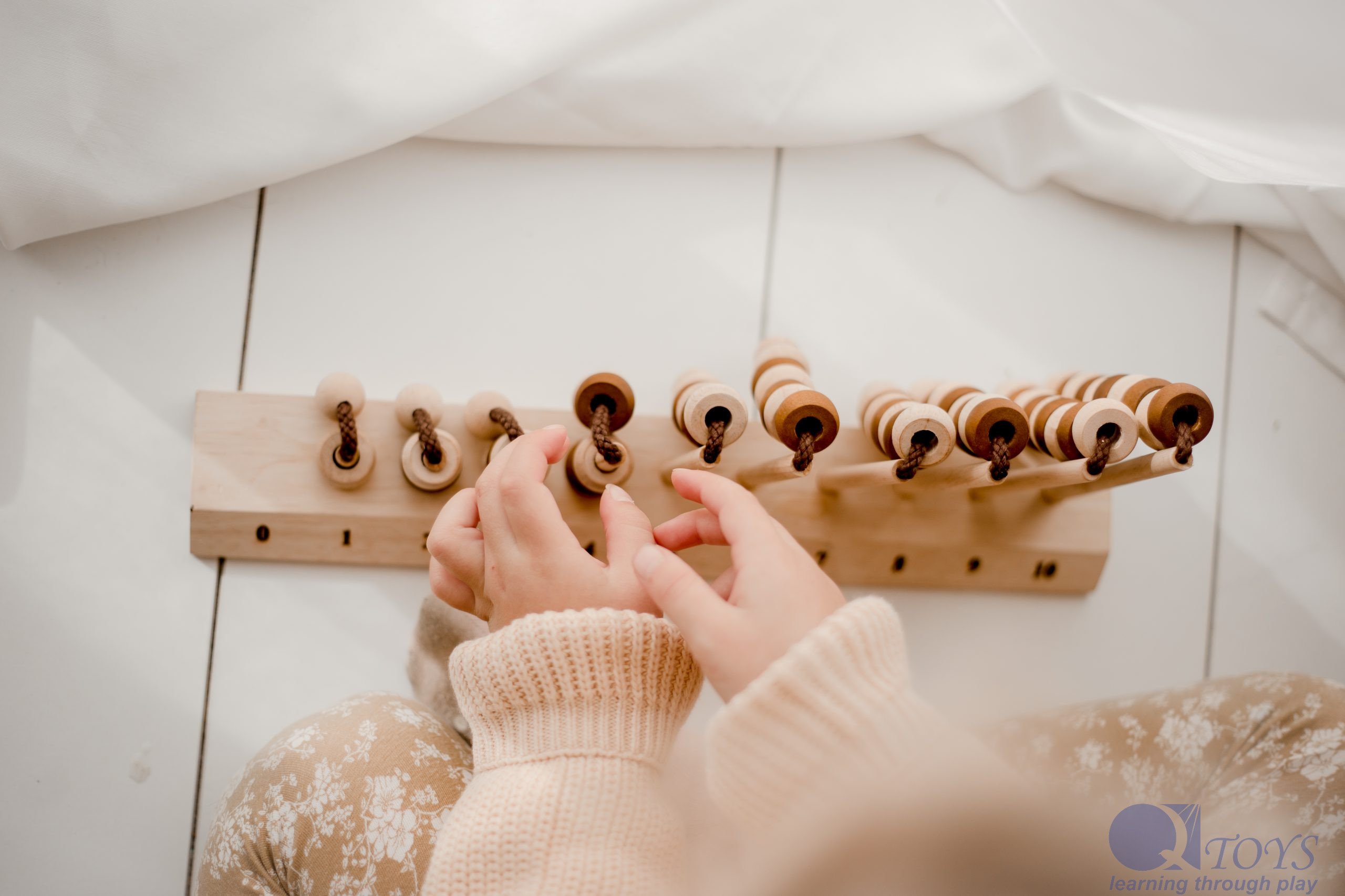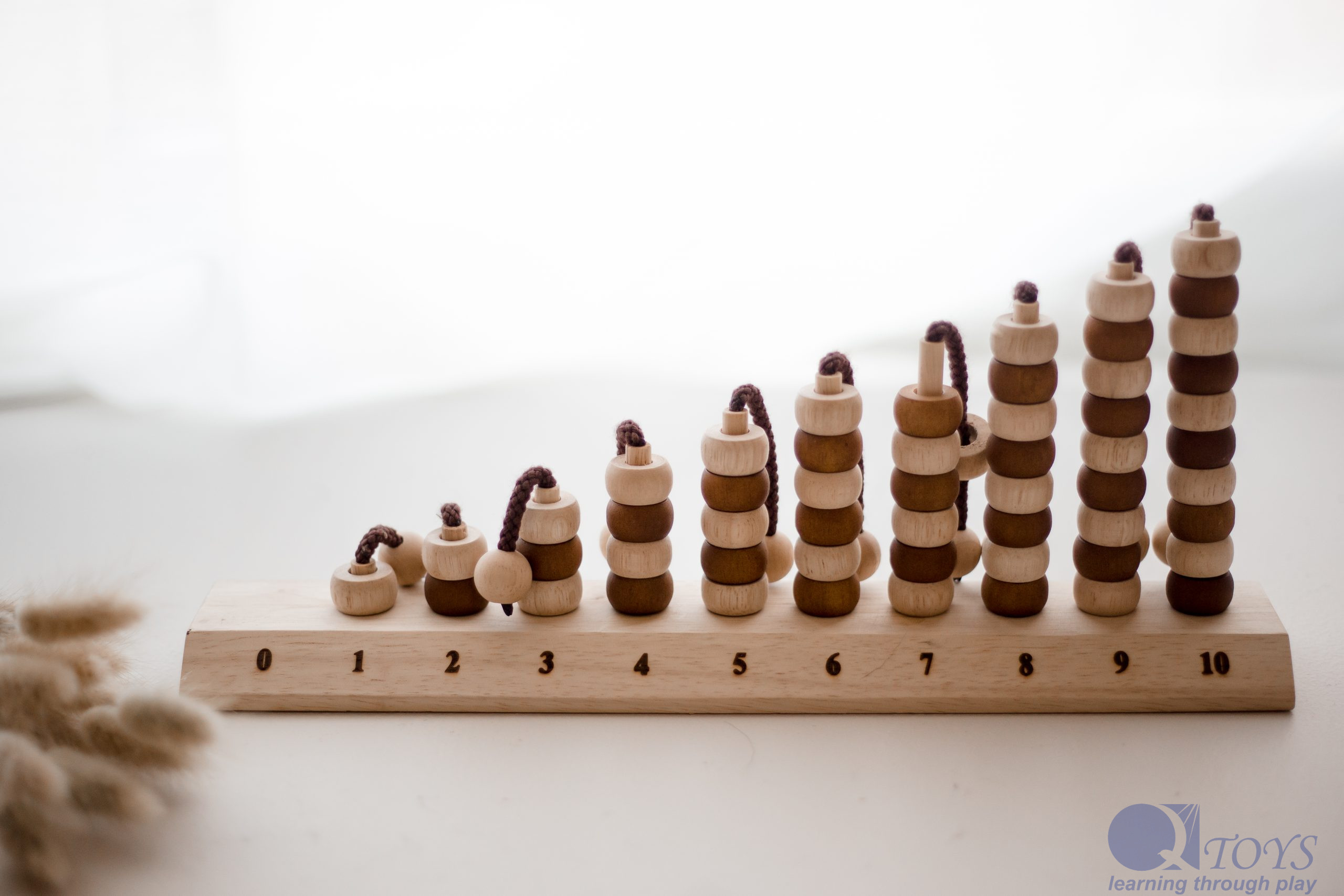 Our two-tone counting stair is a great way to practice those early math skills. It consists of beads on the string ranging from numbers 1-10. Children can engage in this experience as they learn to count the beads using their fingers which promotes the development of their fine motor skills.