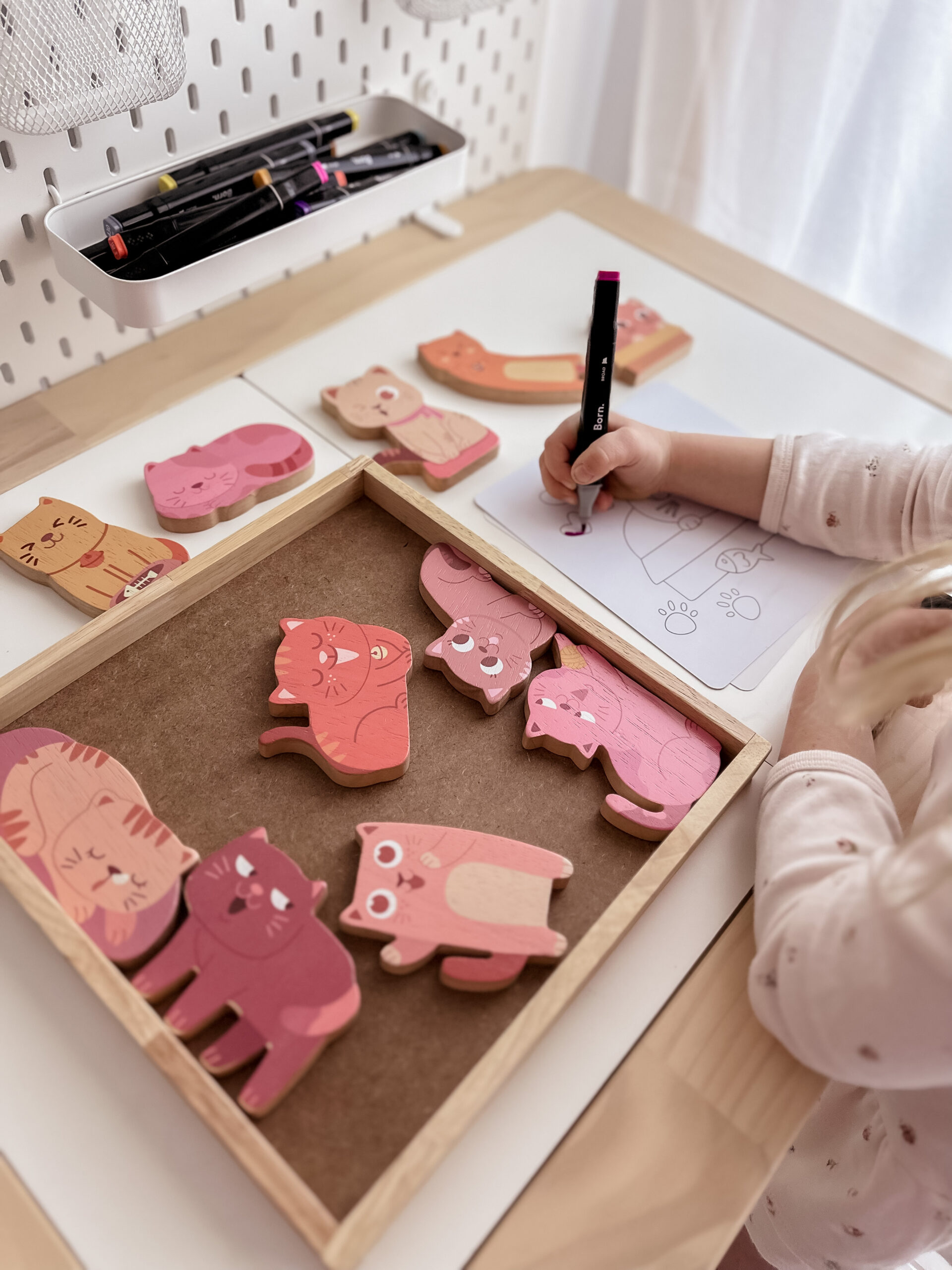 The cats are open-ended toys, providing children with the perfect opportunity to explore their imaginative skills. Imaginative play is when children enact an event or experience in their life that they have come across or found interesting. Consequently, it allows them to create stories and explore new ideas, connecting with the world around them in a meaningful way.
