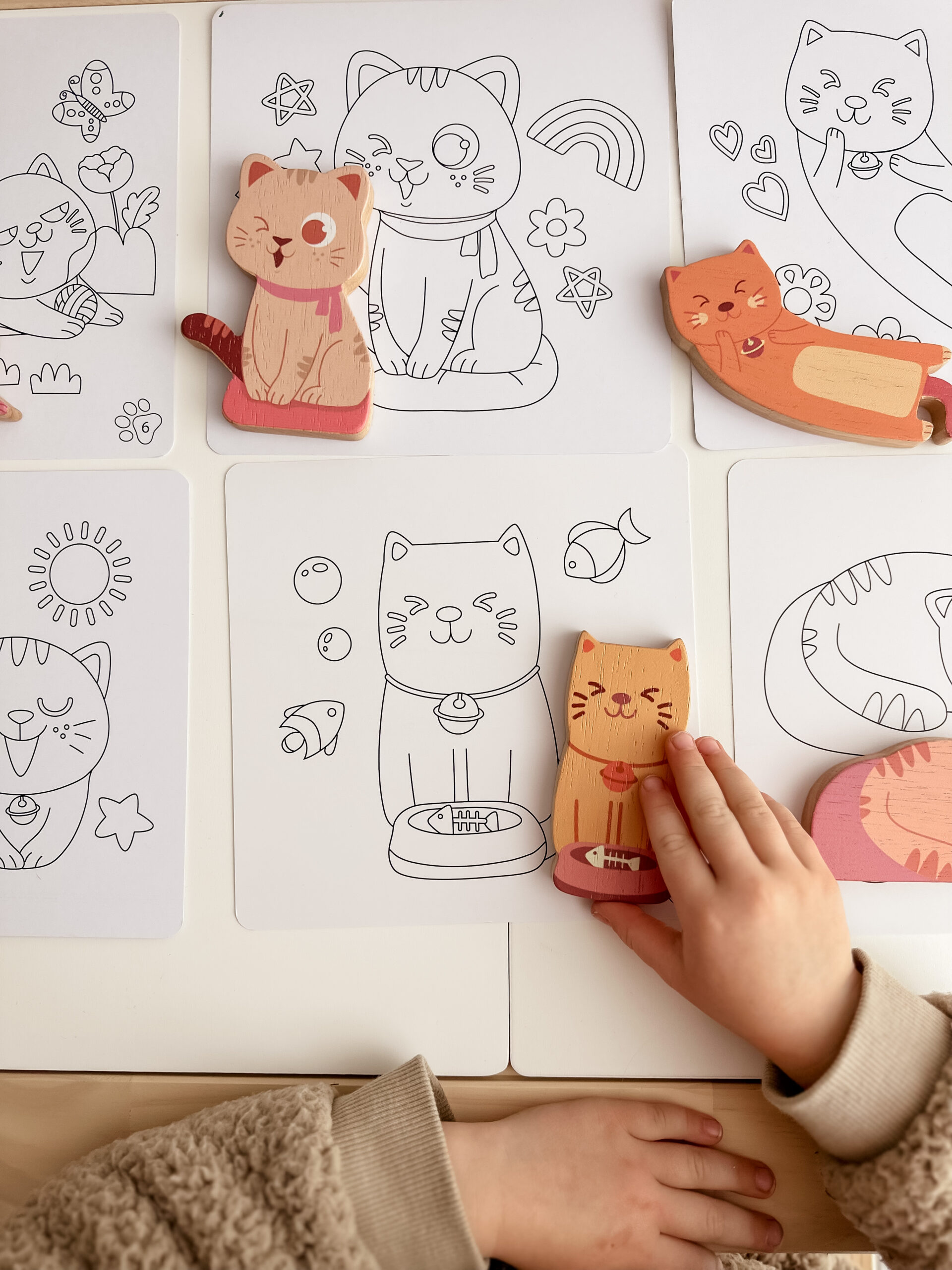 Incorporating both imaginative play and coloring, this cat play set offers a comprehensive play experience. It supports various aspects of child development, encouraging creativity, language skills, and social interaction. Children can immerse themselves in their own little world, exploring and creating as they play.