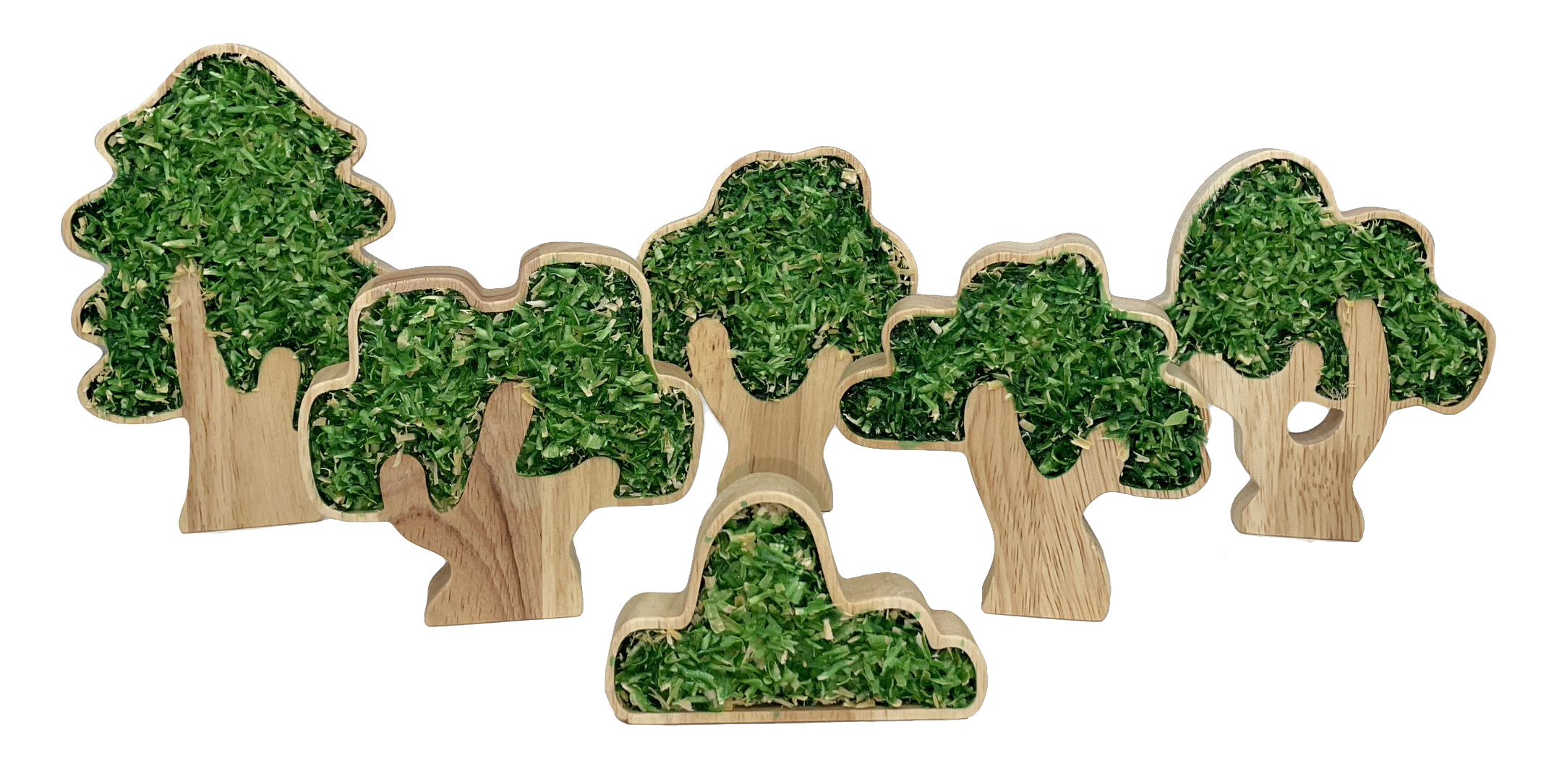 Setting the Scene: Furthermore, the Eco Tree Play Set (set of 6) is the perfect accessory to complete this scene. Made from sustainably sourced, natural wood, the trees offer rich textures for children to explore with their fingertips. Therefore, they seamlessly integrate with the animal set, allowing children to create realistic pastures, shady orchards, or deep forests where the animals graze and the tractor rolls.