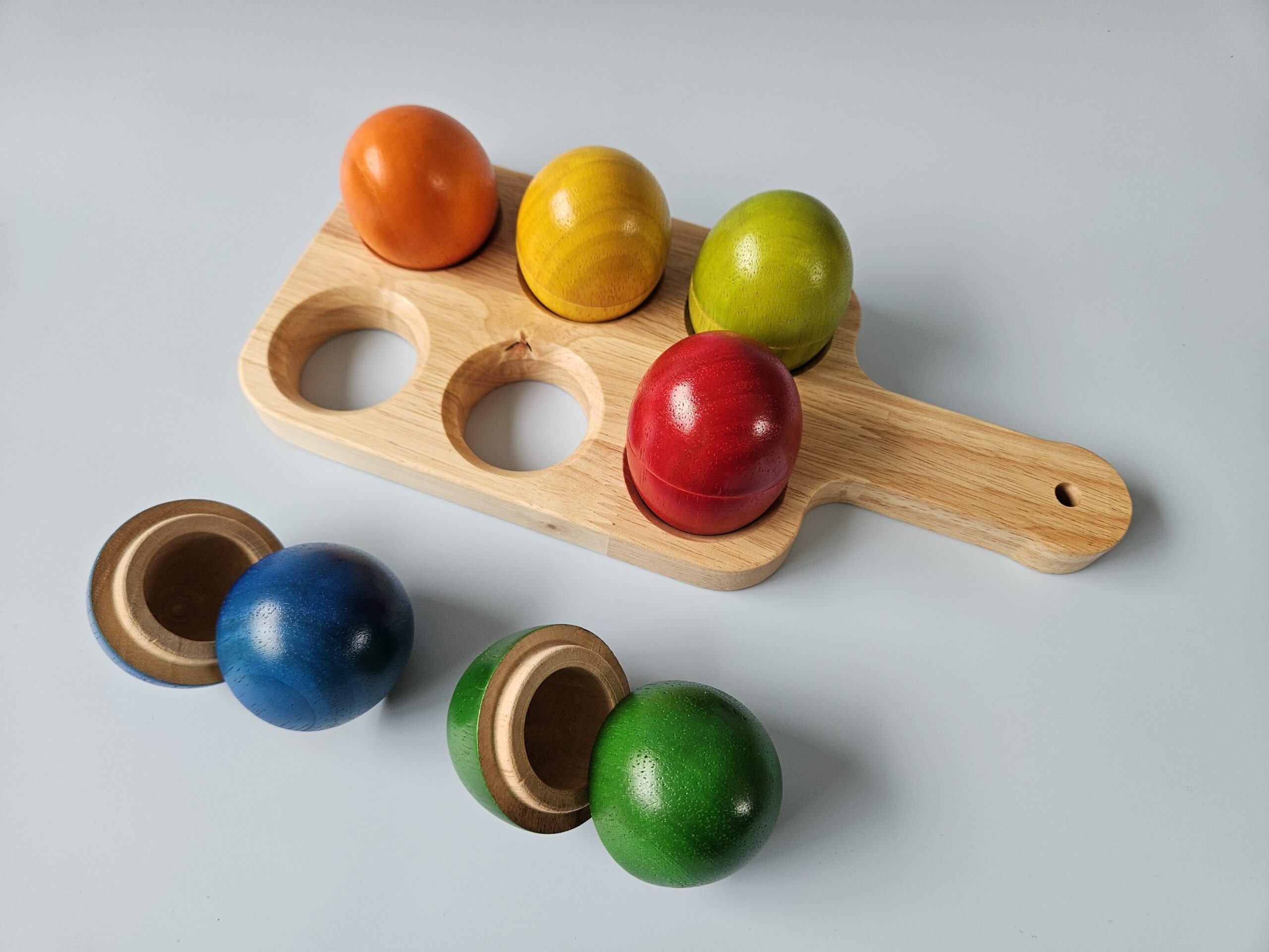 Together, the Nesting Egg Tray and Hollow Eggs Set of 6 offer a complete play experience that sparks creativity, enhances learning, and fosters valuable developmental skills. From handling and sorting eggs to creating imaginative scenarios, every moment is an opportunity for growth.