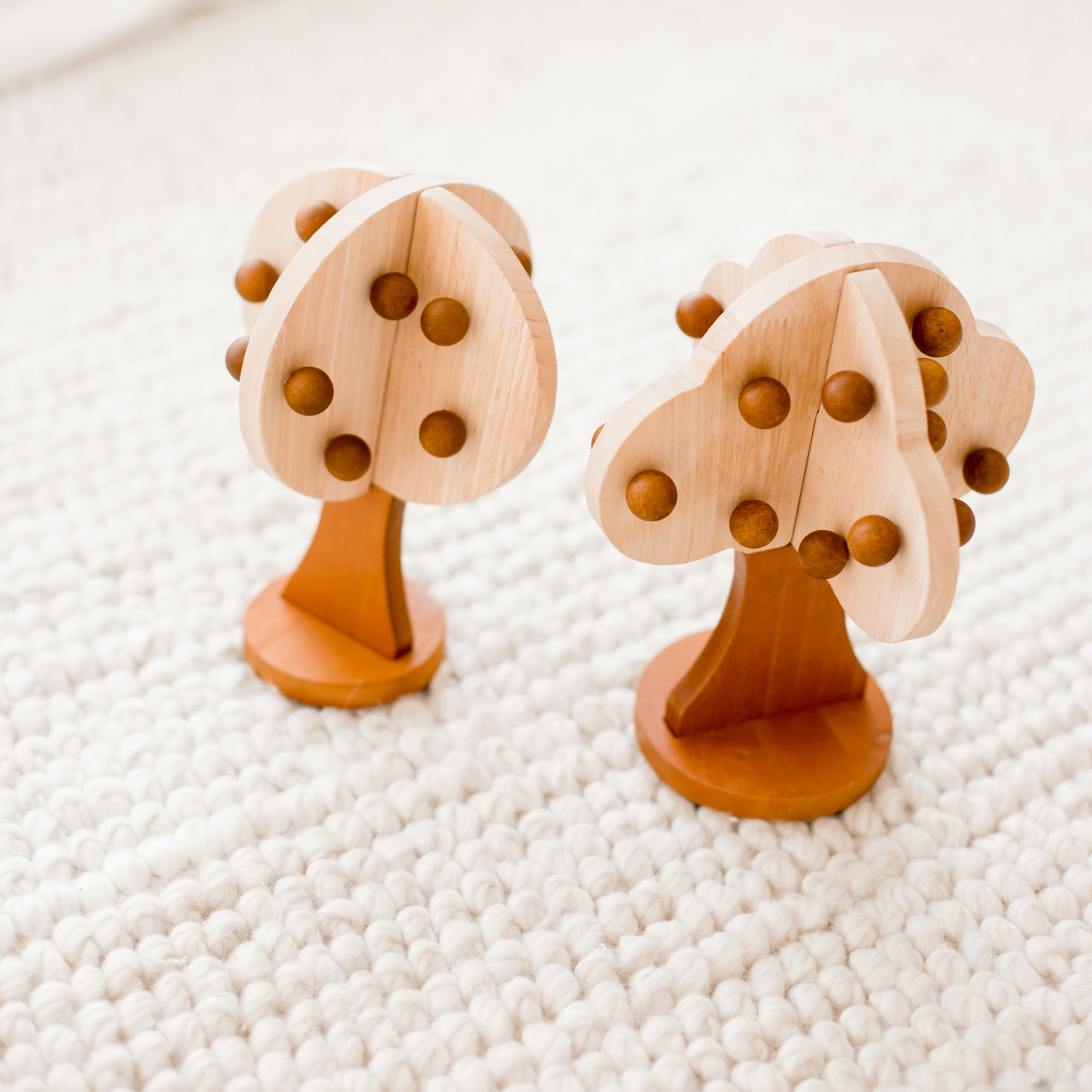 Two wooden fruit trees to add to your imaginative play space. Encourage children to build their trees and explore the world of imaginative play. These trees go perfectly with our farm play set and our wooden barn house. Children will enjoy putting these trees together thus promoting the development of their fine motor skills.