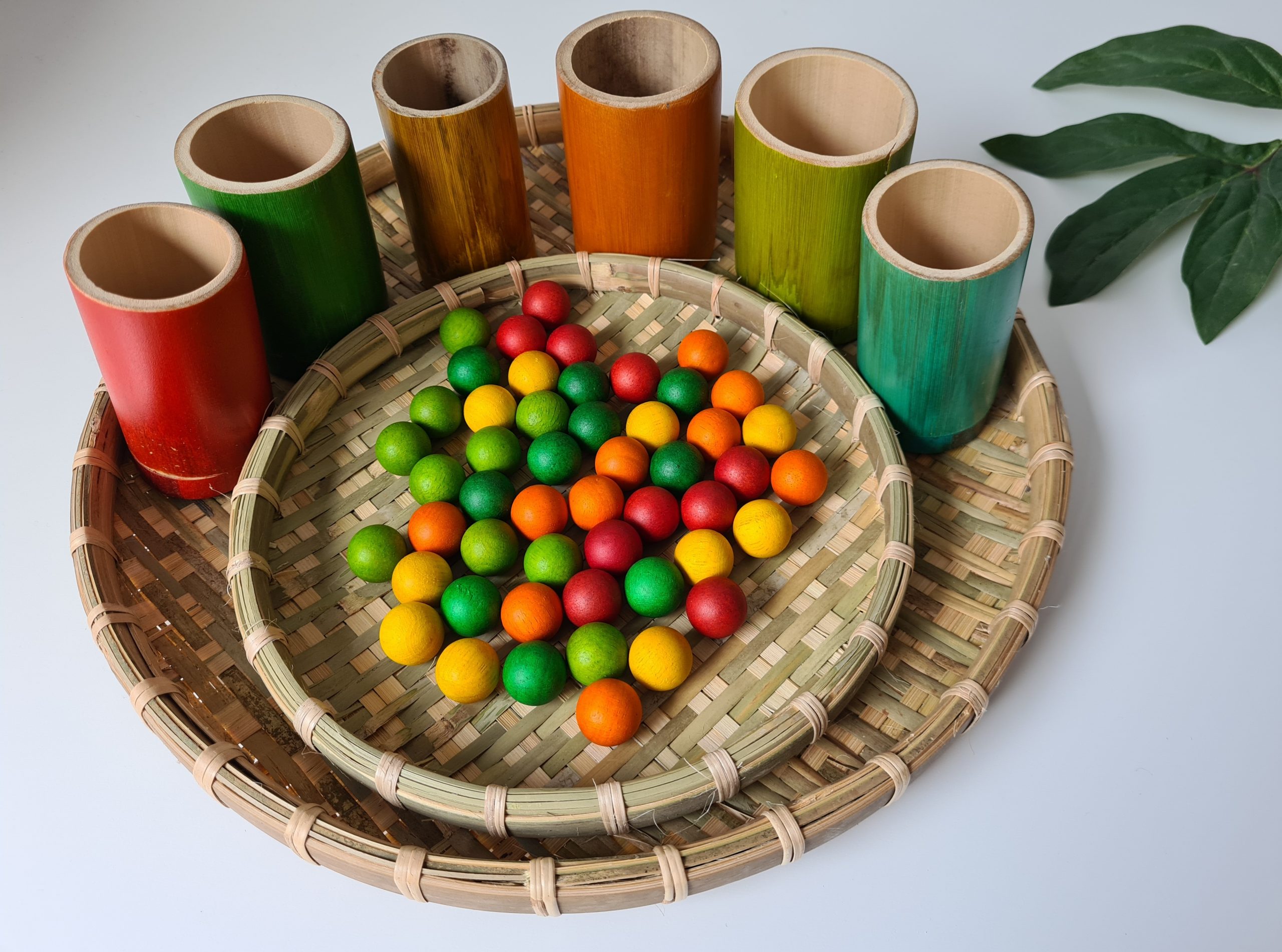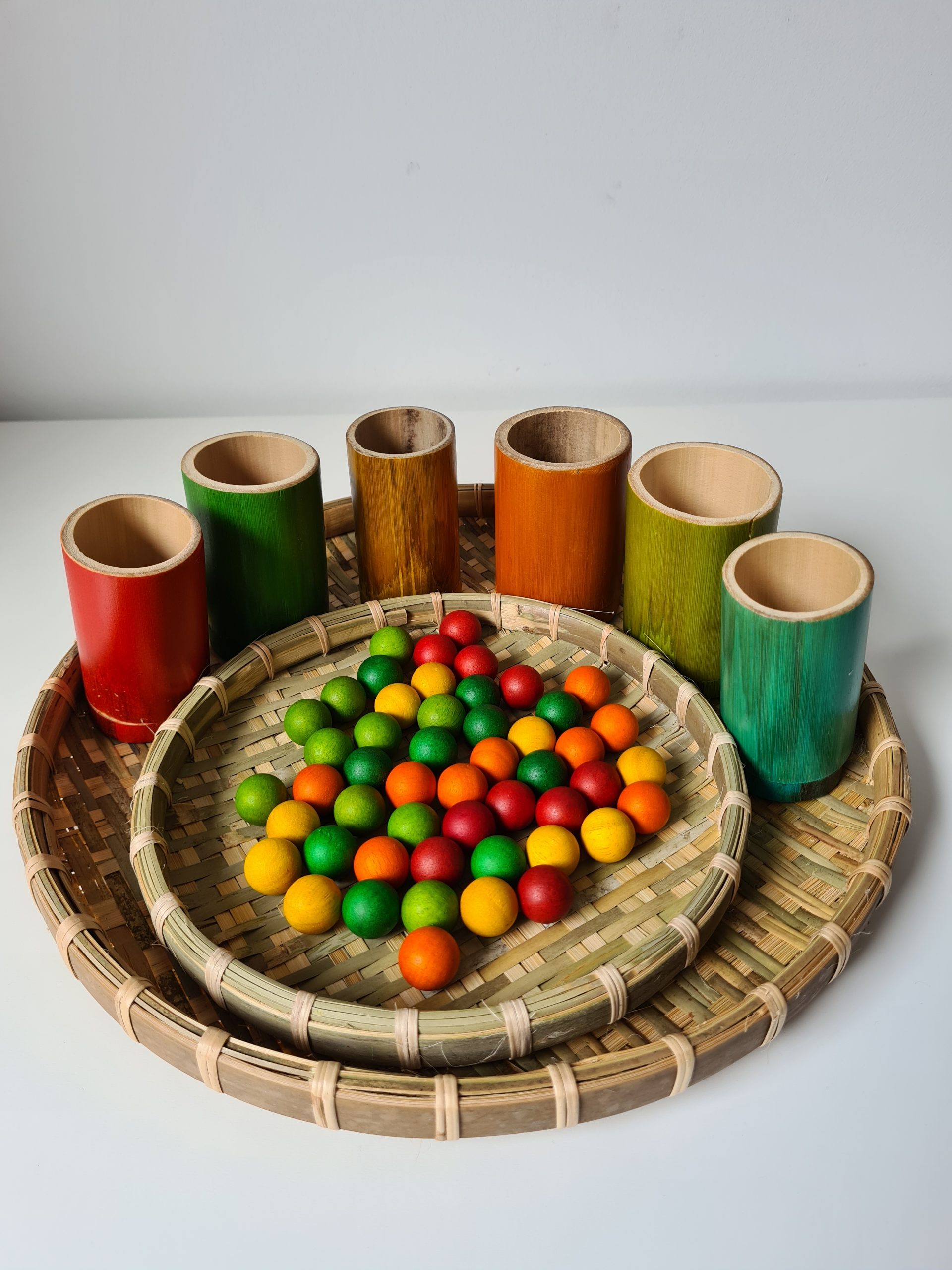 Our bamboo trays effortlessly adapt to diverse scenarios, whether it’s organising loose parts for threading and lacing activities or serving as a canvas for creative endeavours.