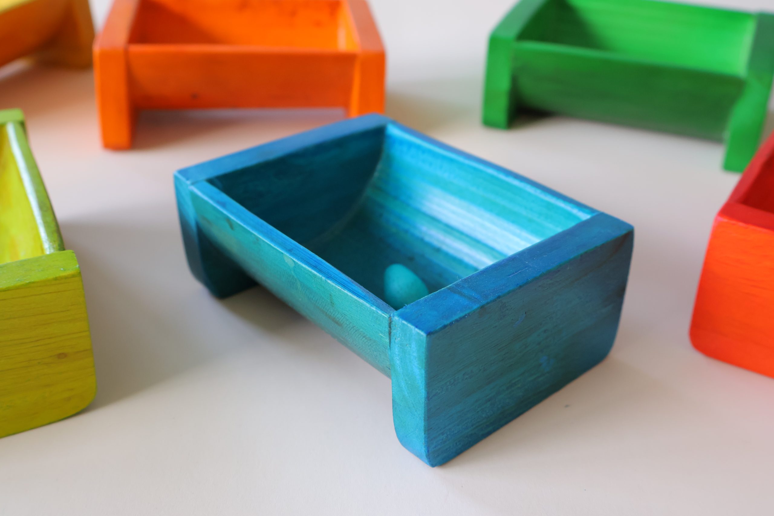 The Coloured Bamboo Sorting Containers are versatile tools for creative and educational play. Crafted from eco-friendly bamboo, this set of sorting trays is not only durable but also lightweight, making it ideal for young learners. With a sleek, minimalist design, these containers are perfect for organizing, sorting and learning activities at home or in a classroom setting.