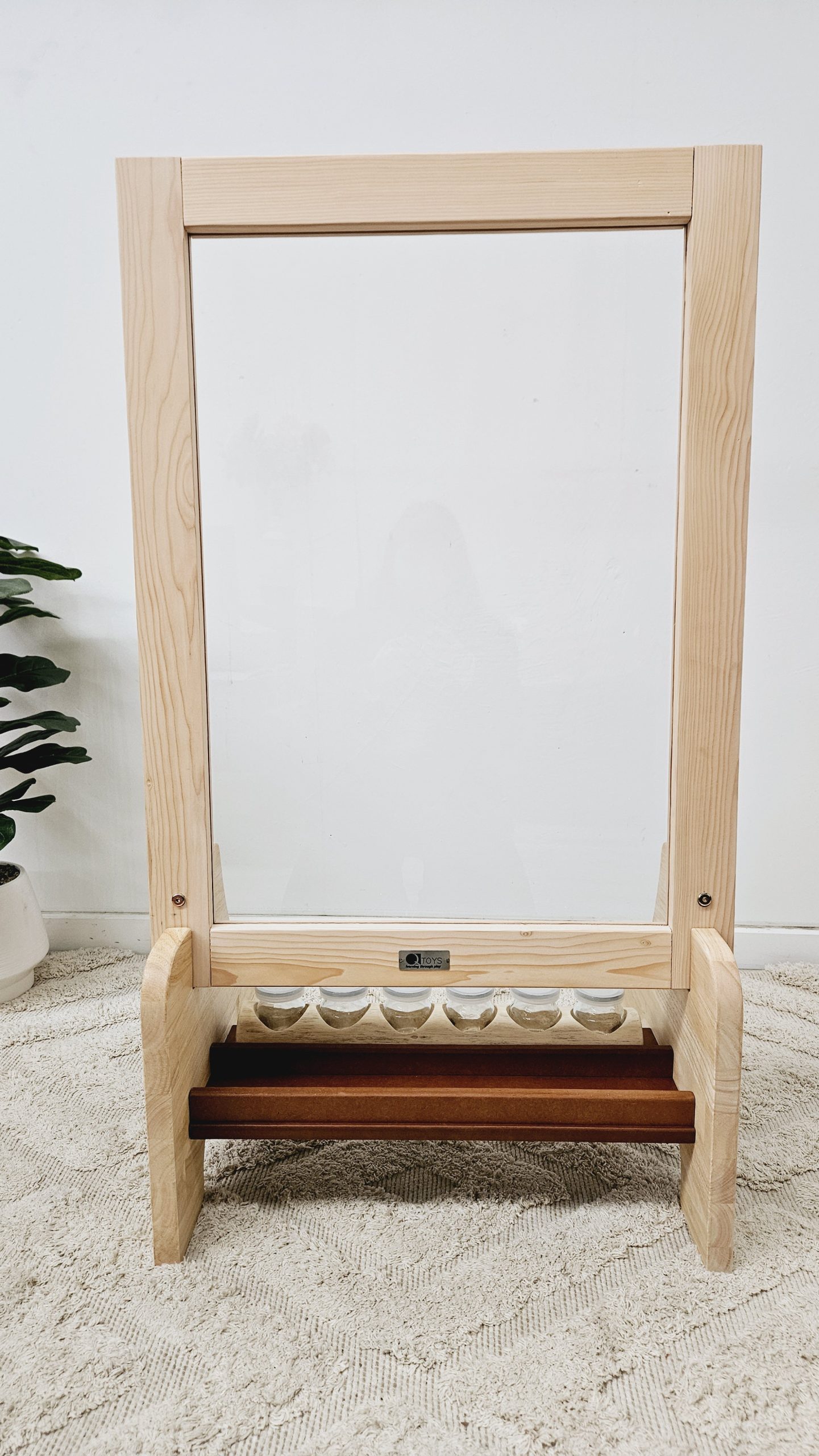 Our toddler perspex easel is the perfect double-sided standing easel so two children can enjoy painting together. It is perfect for preschool and kindergartens and can easily be wiped off and reused. It is ideal for those budding artists to explore their creative skills. Our paint pot holder is perfect for painting or arts and crafts. It includes the glass jars with the holder.