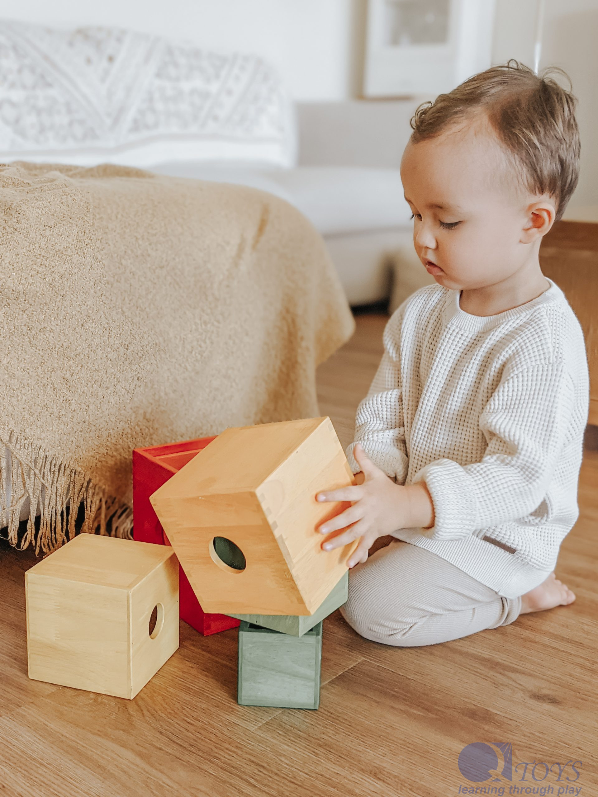 Aside from their primary function as sorting containers, these boxes offer two engaging stacking options: children can stack them into towering structures or nest them neatly within each other, providing opportunities for experimentation and spatial reasoning.
