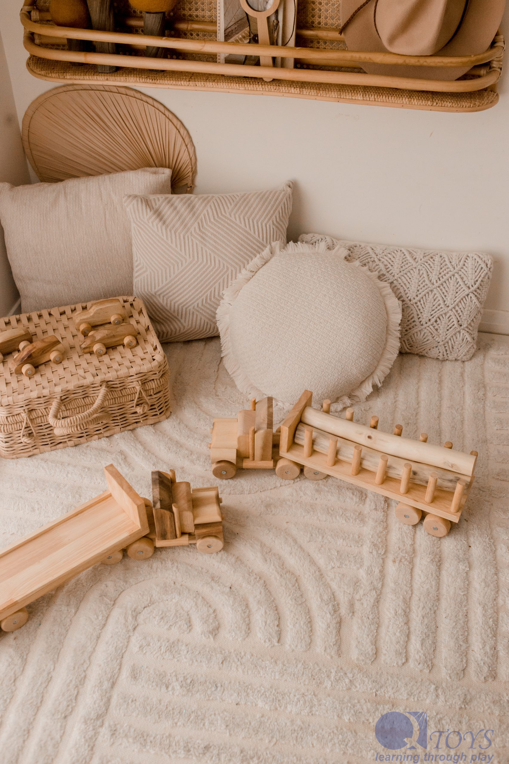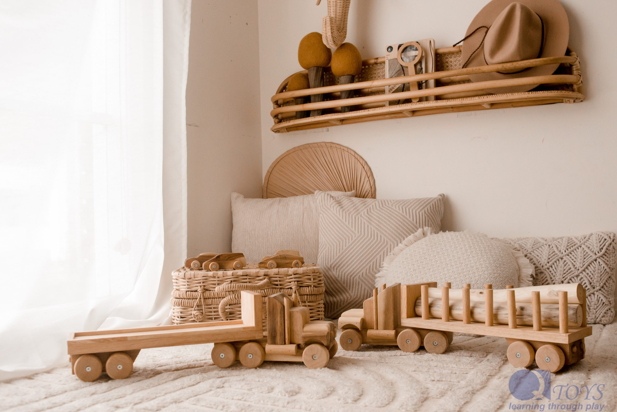Importantly, all Qtoys products prioritize safety and sustainability. Made from sustainable plantation timber, the Flat Back Truck is finished with natural vegetable oils. This eco-friendly finish not only adds to its durability but also gives it a beautiful, smooth texture that is pleasing to touch. Using non-toxic materials ensures a safe play environment for children, providing peace of mind for parents. Consequently, the Flat Back Truck is a safe and responsible choice for your child’s playtime.
