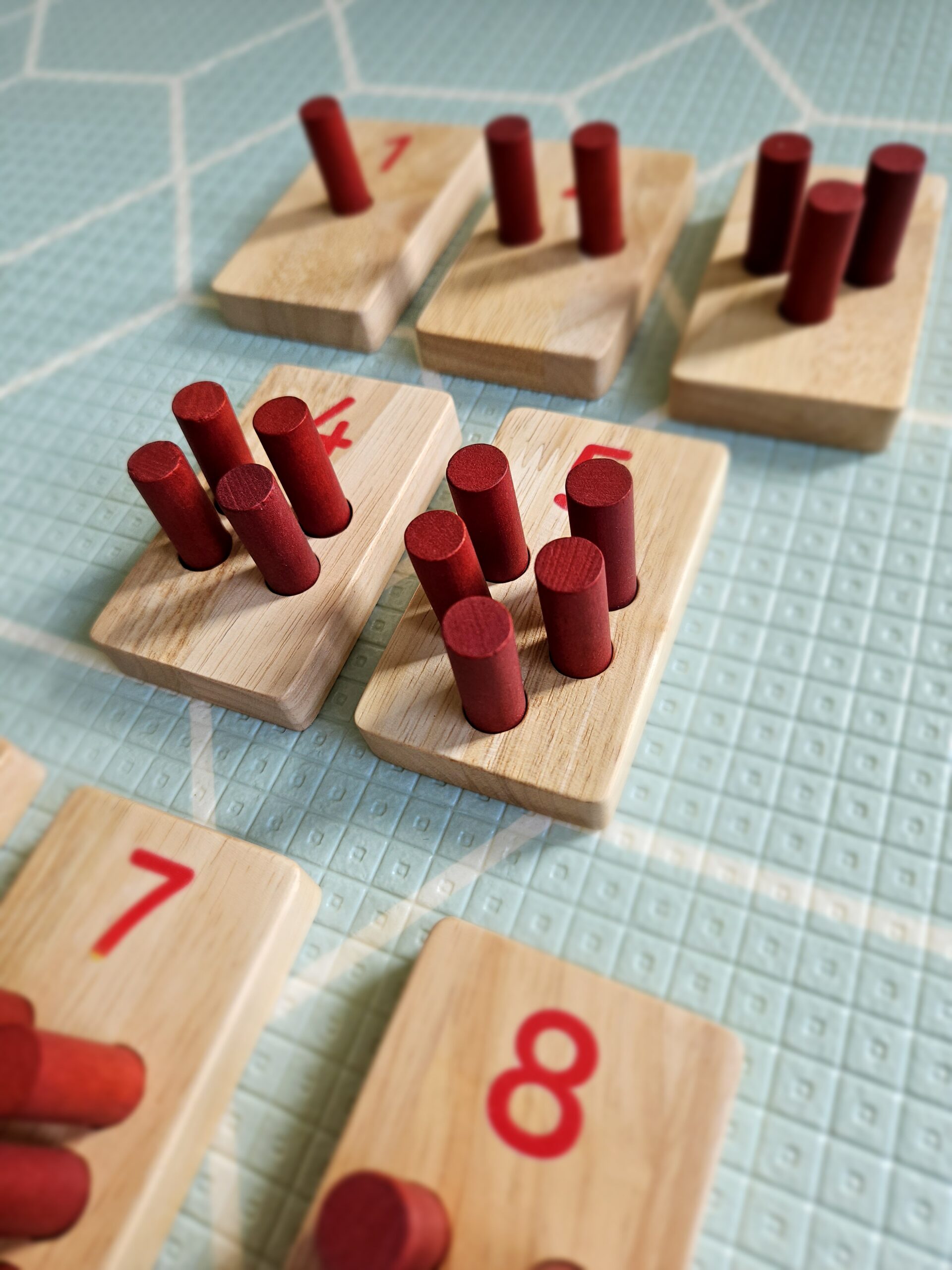 Ideal for classrooms and homeschooling, the Montessori counting set revolutionizes children’s engagement with numbers. With each peg placed on the board in numerical order, young learners embark on a tactile adventure that transcends traditional rote memorization. Instead, they visually absorb the concept of counting, tracing the natural progression of numbers with their fingertips.