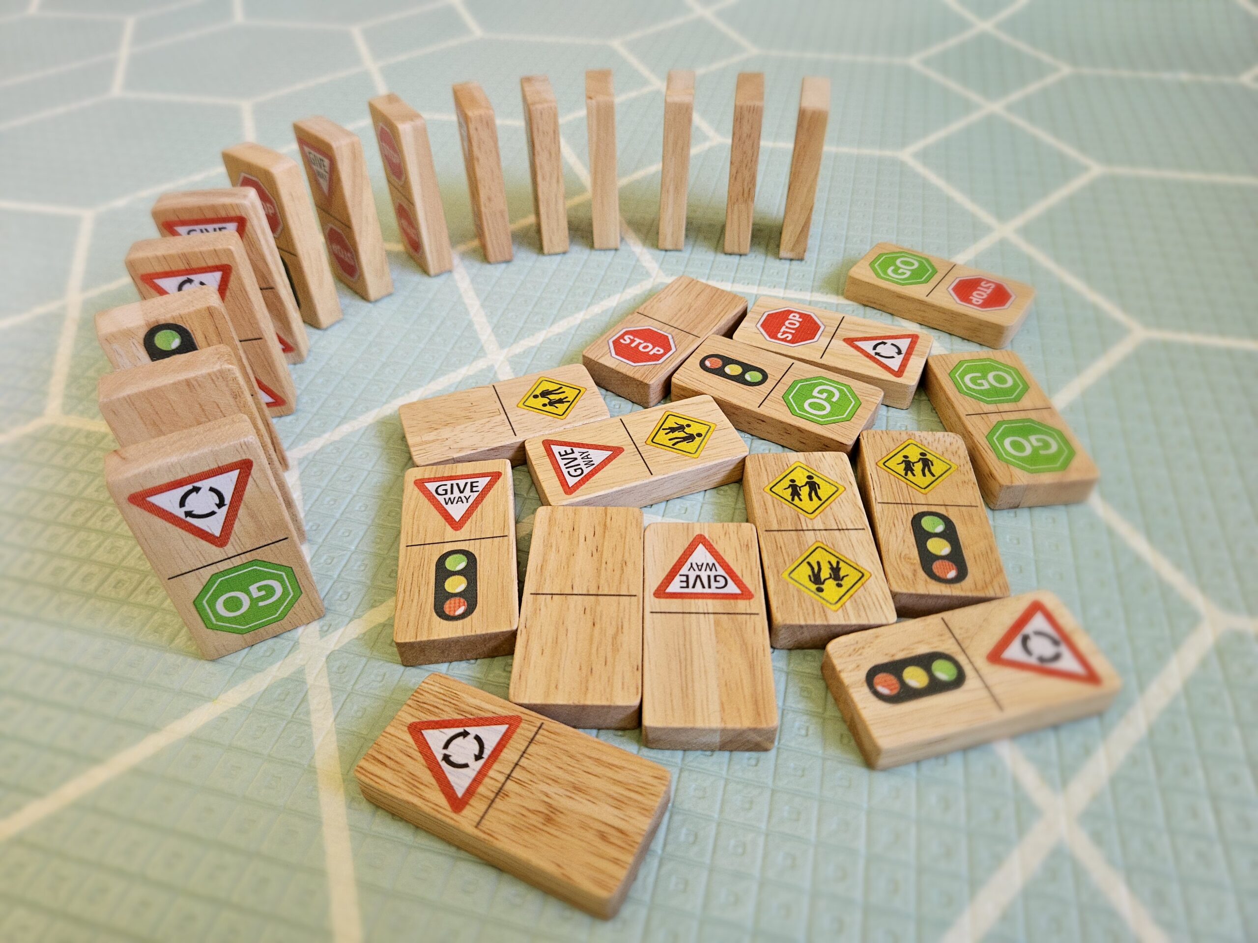 Crafted from high-quality wood, the dominoes are durable and safe for children. The vibrant colors and clear illustrations of the traffic signs make them visually appealing and easy to recognize.