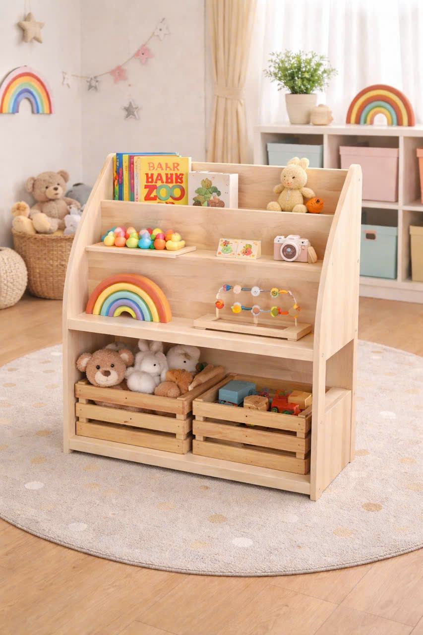 The Bookshelf with bamboo storage crates is a commitment to your child’s development. It bridges the gap between chaos and order, between “boredom” and “exploration.” With its solid rubber wood construction and intuitive bamboo crates, it provides the perfect foundation for a lifetime of literacy and self-reliance.