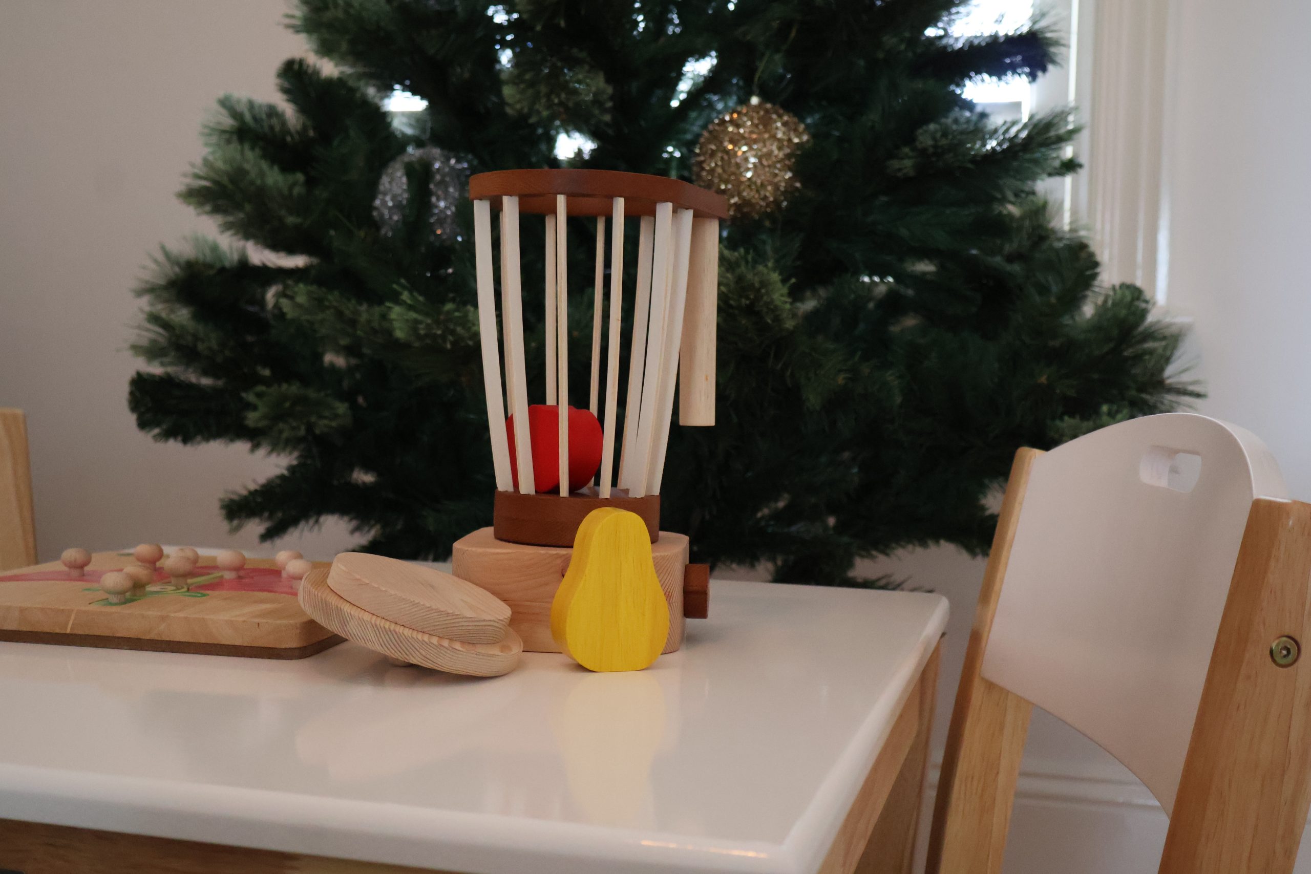 Materials:Crafted from Plantation Rubberwood, Acacia or Canadian Hemlock. Some of our toys are also made from industrial byproducts of coconuts and lychee trees. We ensure zero waste and minimal environmental impact. Finish:Dyed with non-toxic, water-based color stains. The texture of the natural wood remains palpable, connecting the child to nature and enhancing sensory development (Steiner philosophy). |