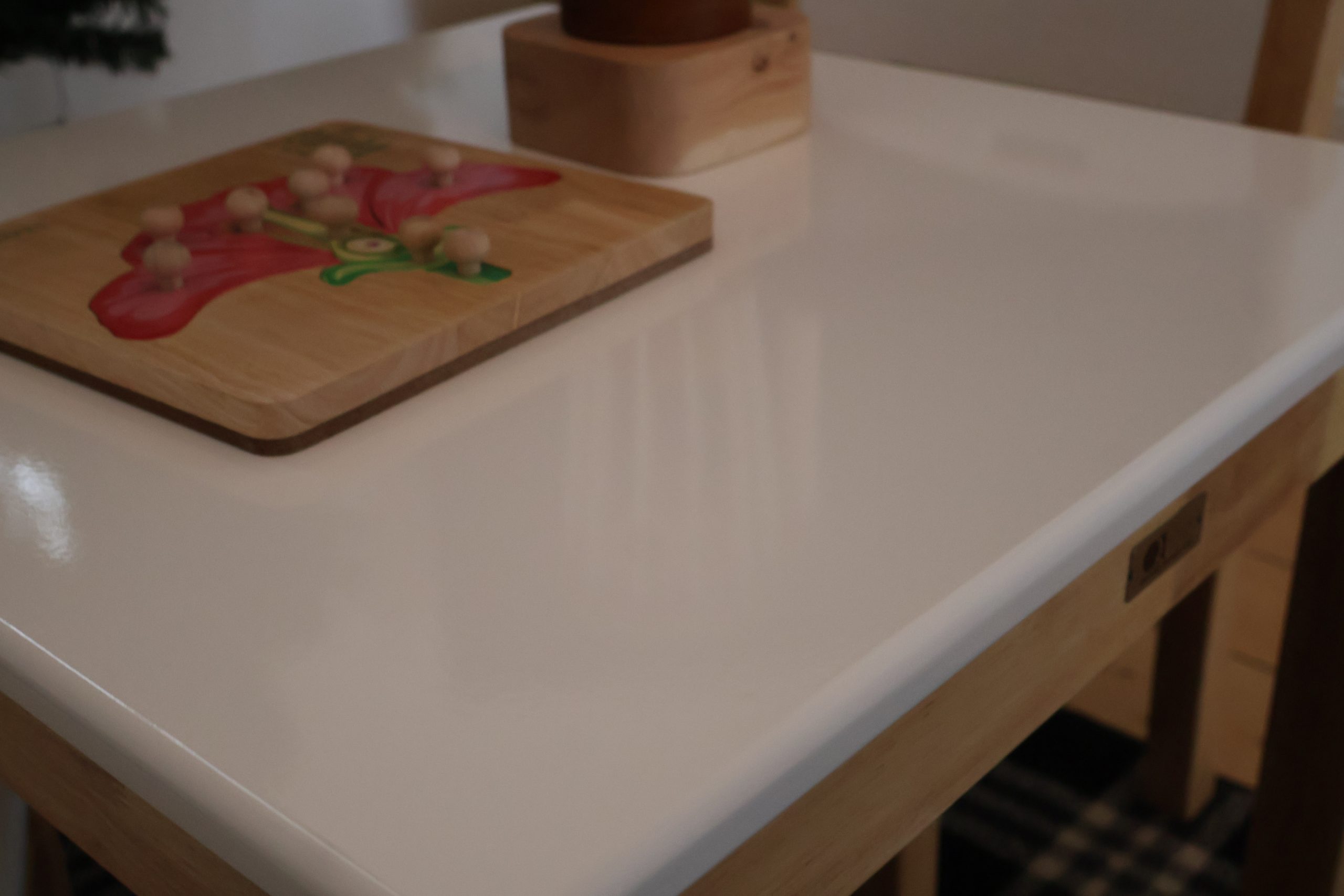 The White Top Timber Table boasts several notable features. Firstly, it is made from high-quality Acacia hardwood, ensuring durability and longevity. The white paint finish not only adds a touch of sophistication but also protects the wood, making it resistant to wear and tear. Moreover, all Qtoys products, including this table, are crafted using plantation timber and child-safe materials, making them eco-friendly and safe for your home environment.