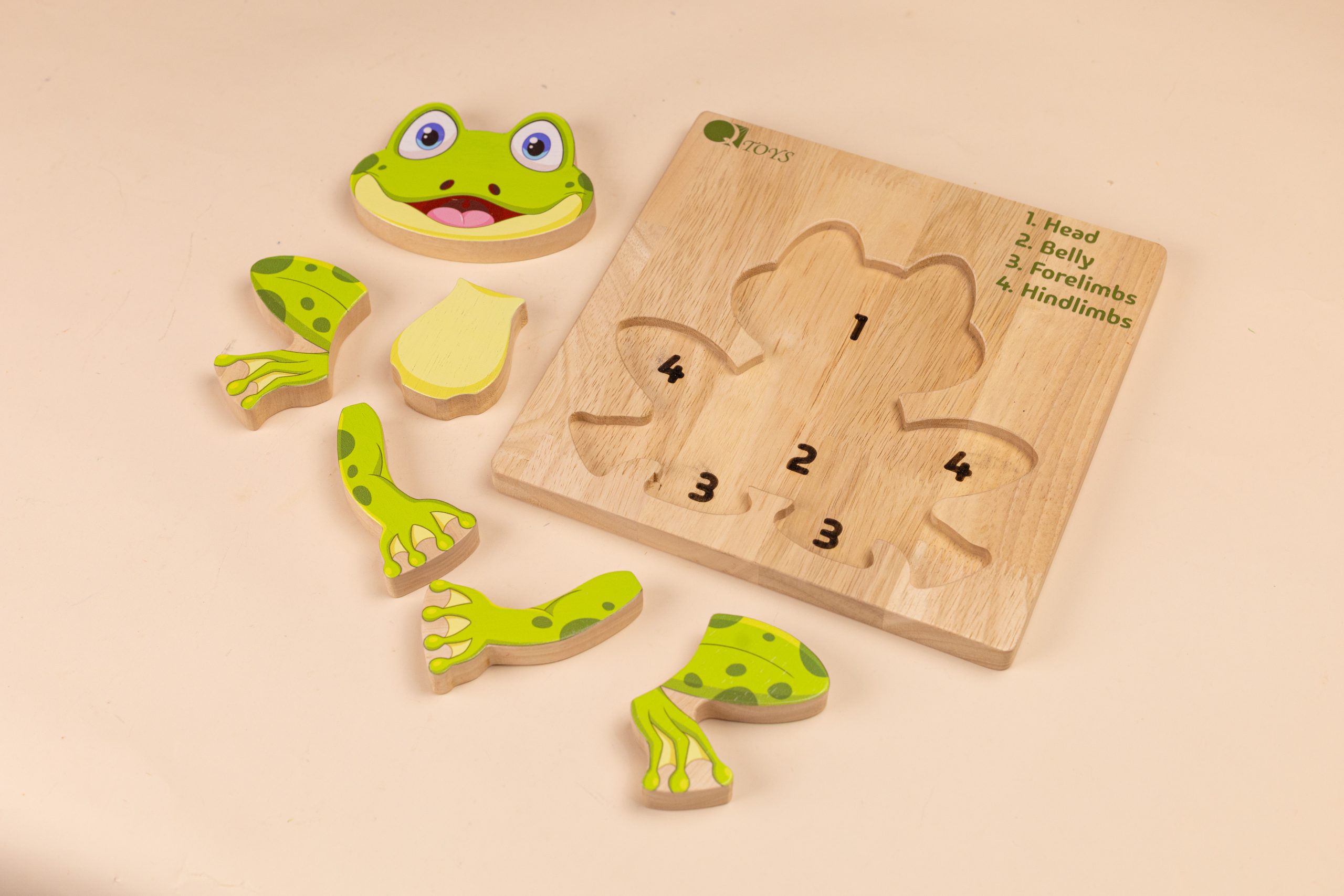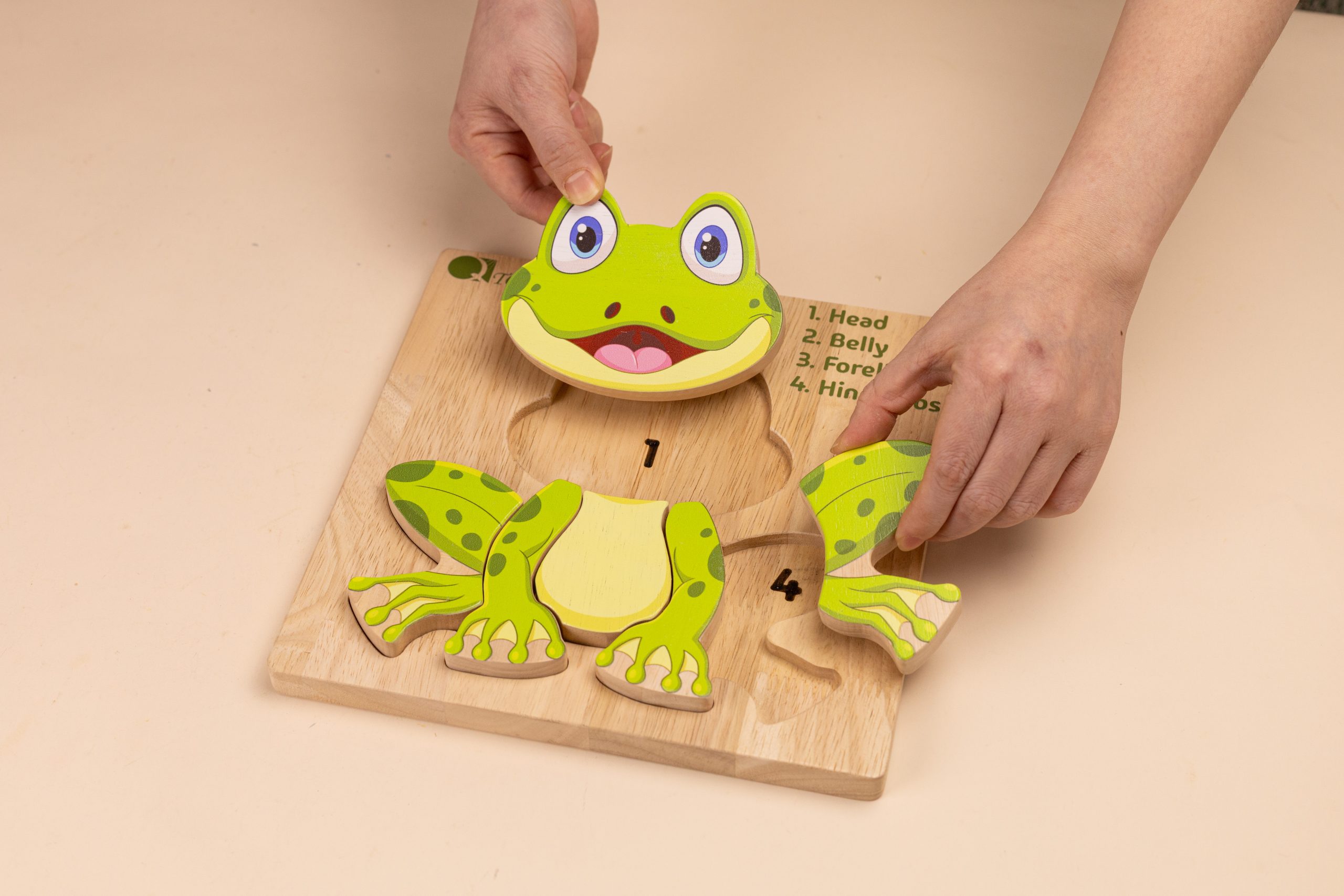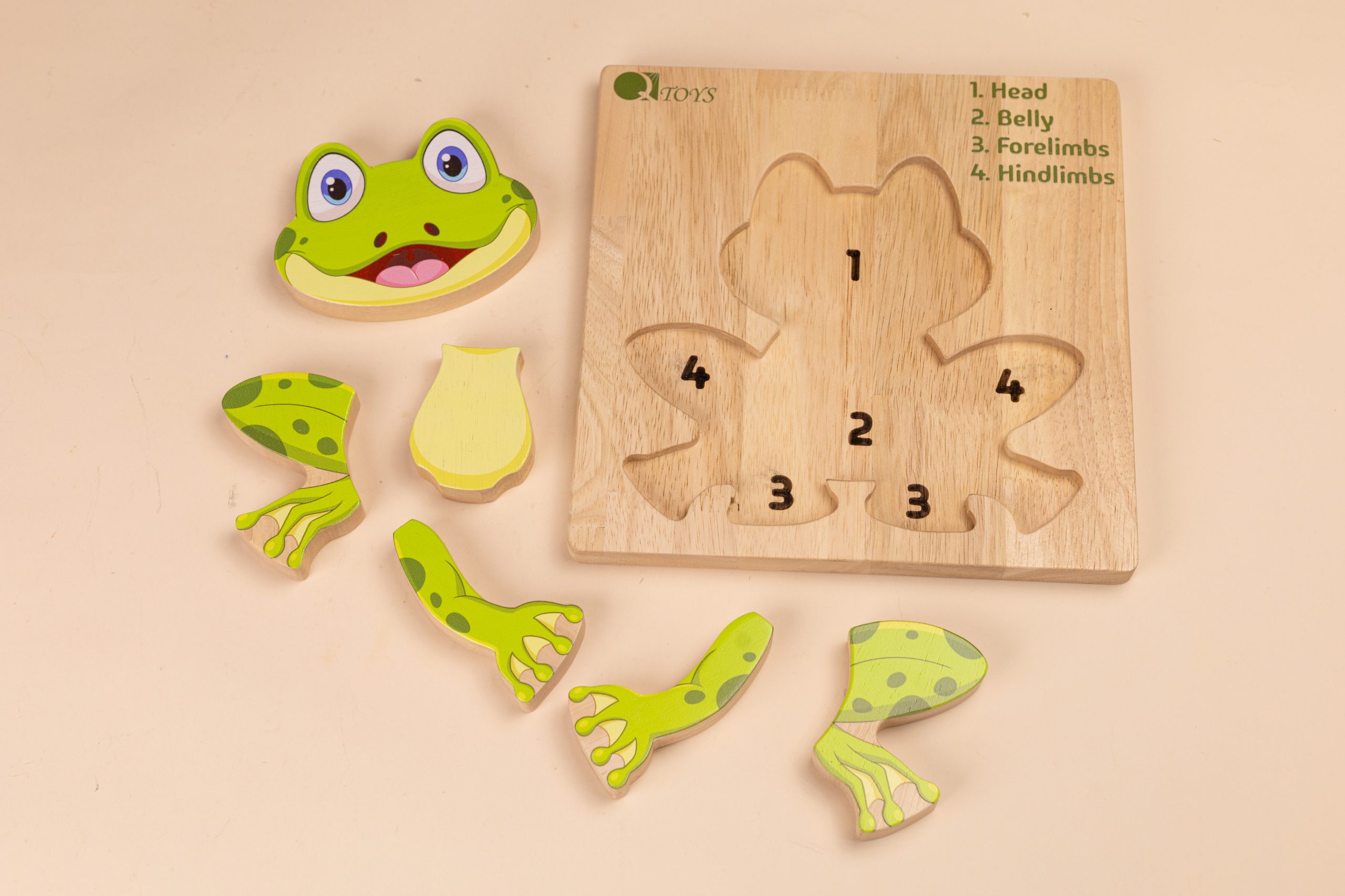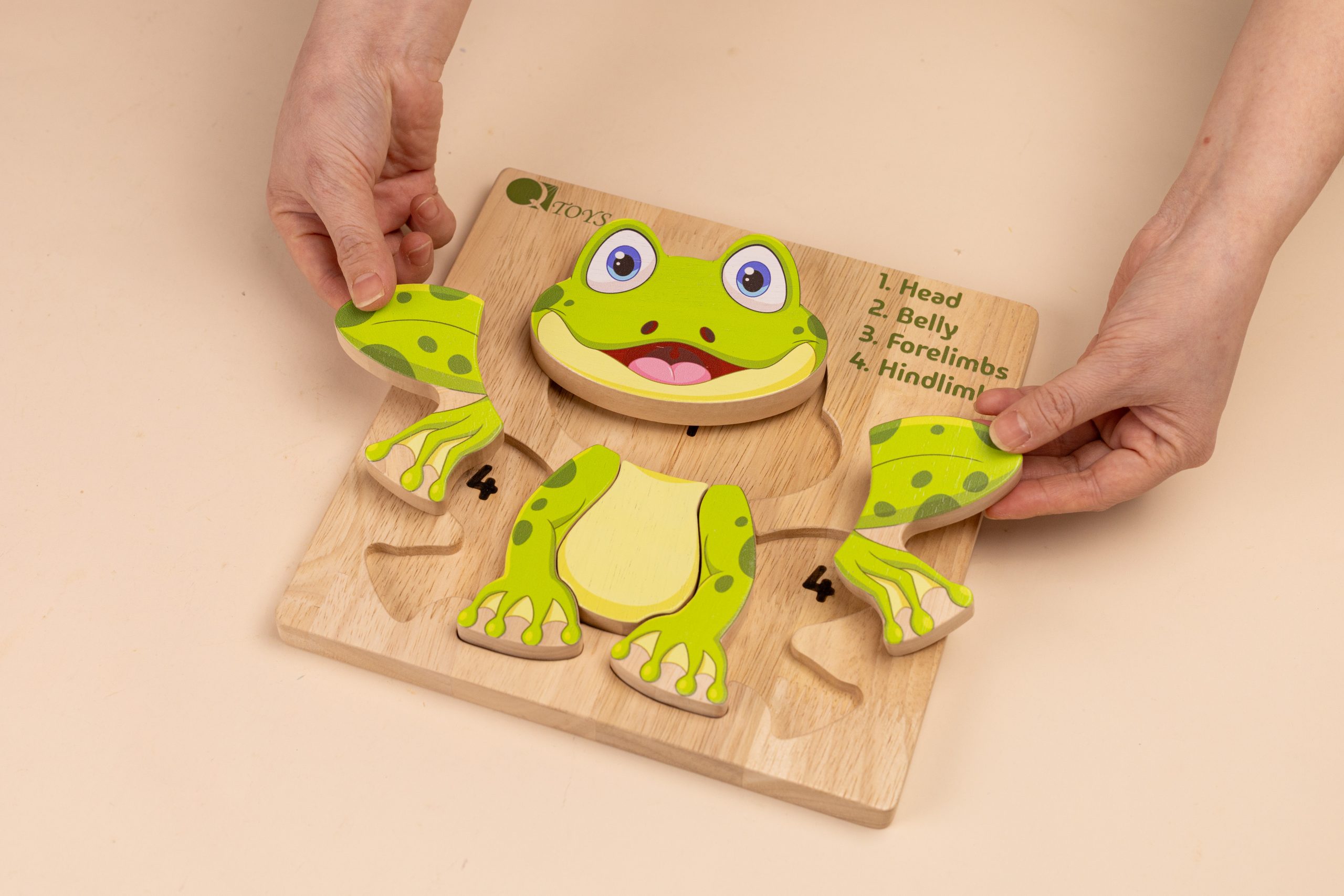 What is the Montessori amphibian anatomy puzzle by QToys? The Montessori amphibian anatomy puzzle is a 13-piece educational science puzzle 3+ crafted by QToys. Made entirely from sustainably sourced rubber wood in Vietnam and finished with a non-toxic water-based sealant, this 0.76kg eco-friendly Montessori amphibian anatomy puzzle introduces early learners to biology. Consequently, this Montessori amphibian anatomy puzzle naturally promotes spatial awareness and fine motor skills through highly engaging, hands-on, screen-free play.