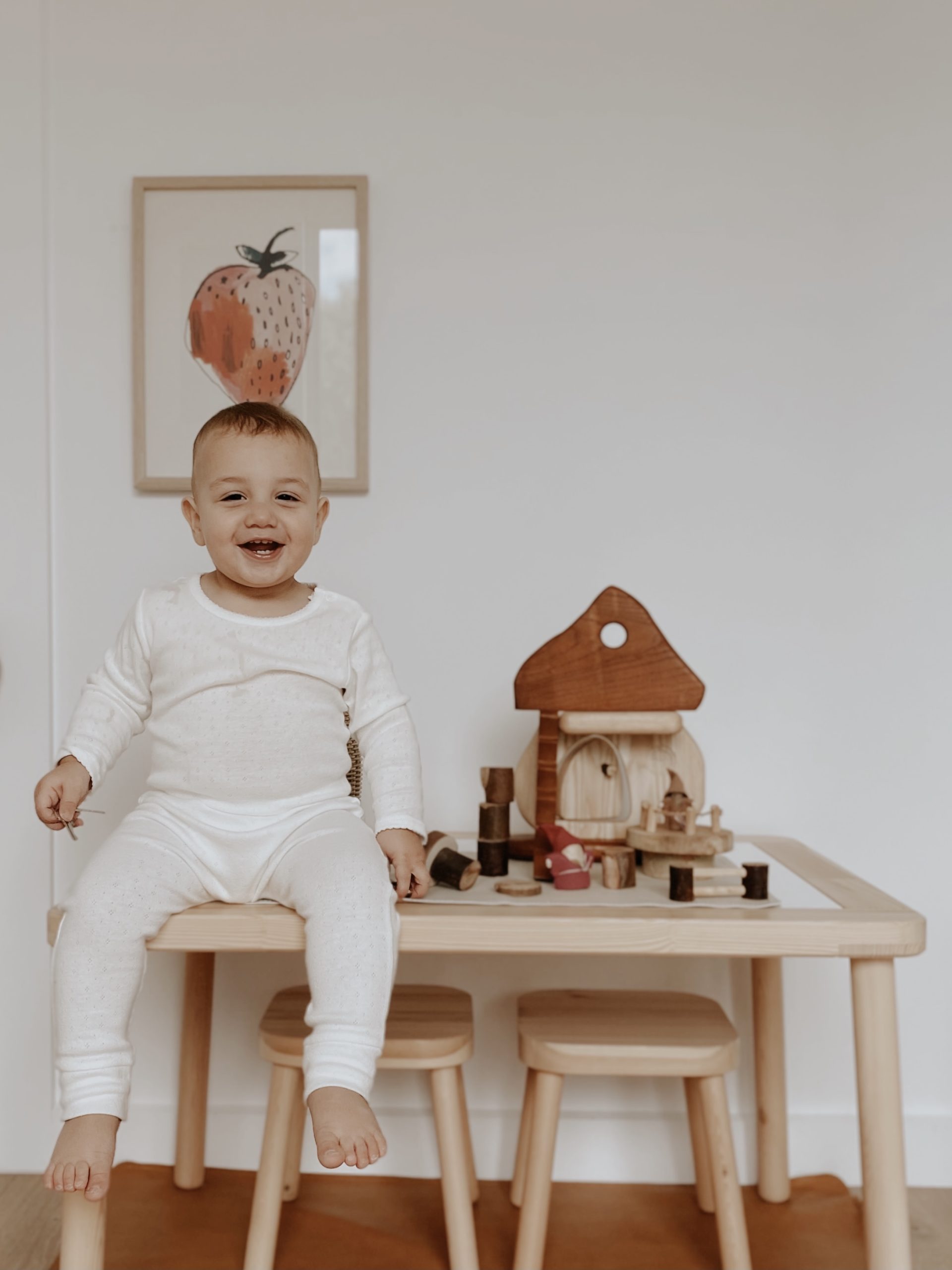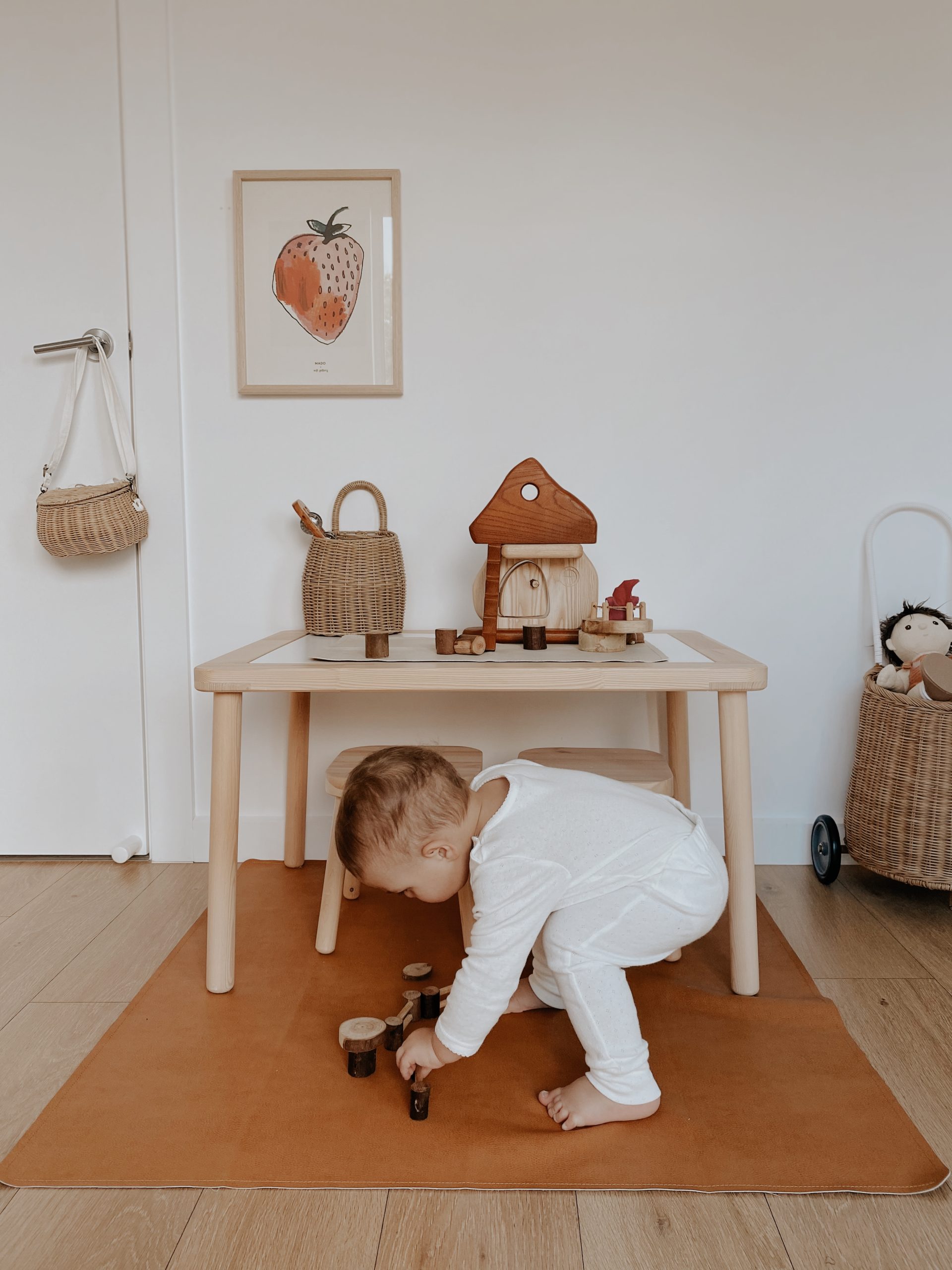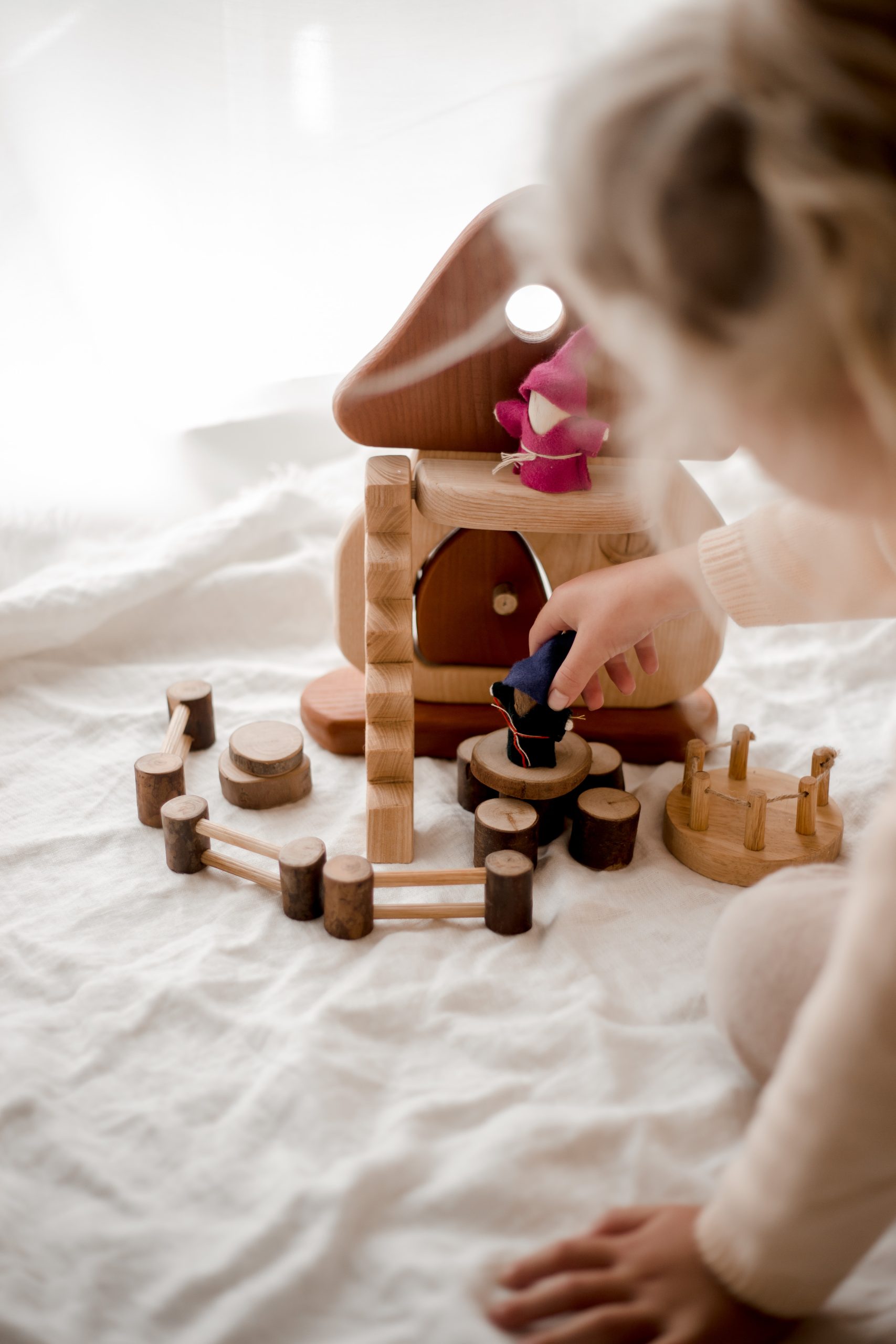 This is the sweetest little mushroom play set perfect for those imaginary thinkers! It includes all accessories as seen in the last image. This set is an open-ended toy which provides children with the perfect opportunity to explore their imaginative skills.