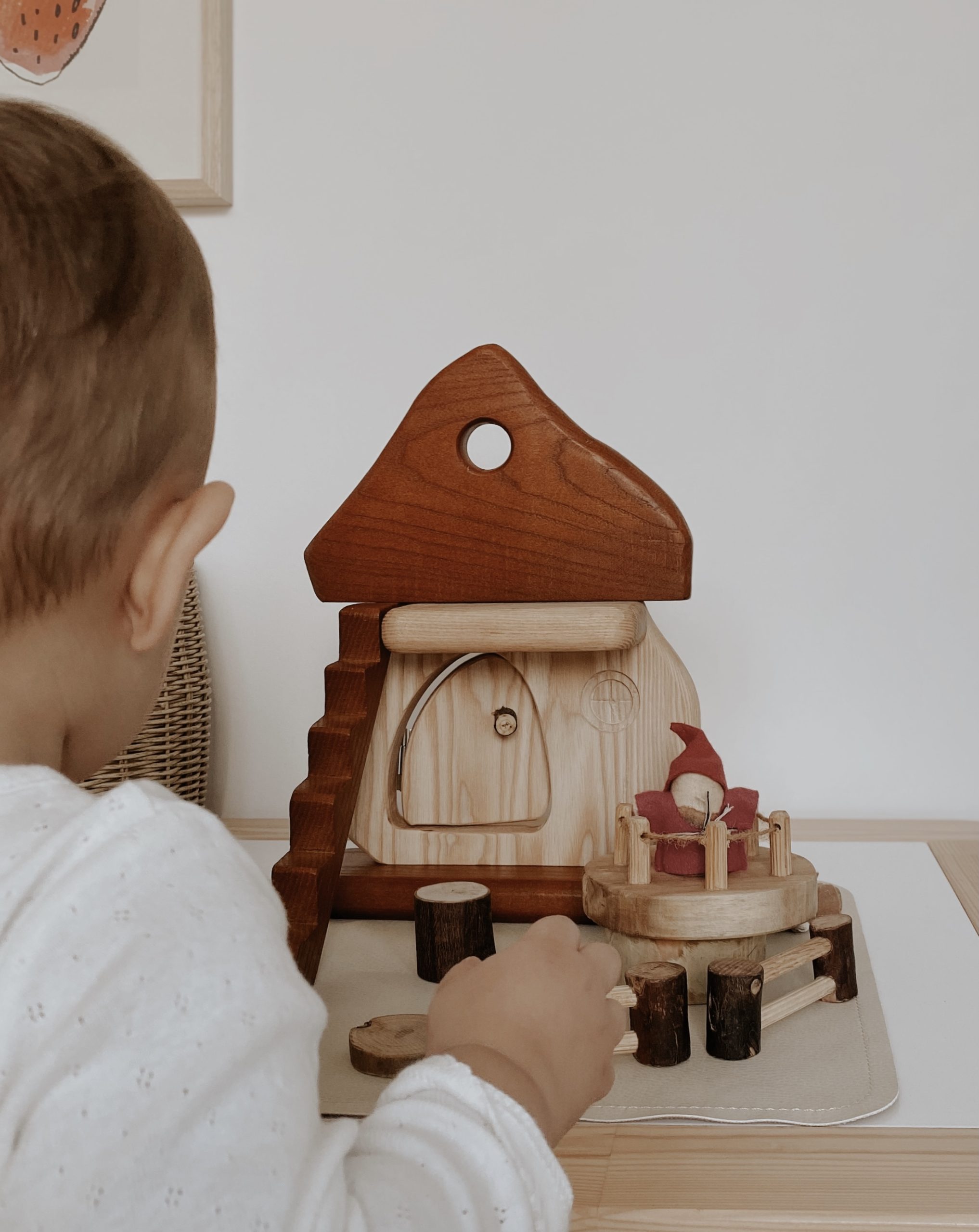 During their pretend play experiences, children come across challenges which they learn to overcome thus developing their problem-solving skills. Another important benefit of pretend play is, it helps develop your toddlers’ emotional needs as they learn to express and understand their feelings. Thus, this natural mushroom house set provides children with endless opportunities through which they can develop their emotional, imaginative, language and creative skills.