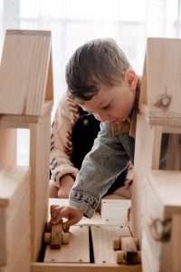 Wooden Kitchenware: QToys’ wooden plates, tongs, and cutting fruit allow children to mimic the real-life cooking they see their parents doing.
