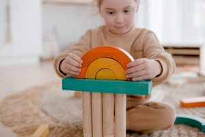 The Qtoys Solution: The same Large Natural Stacking Blocks or Nesting Boards that served as sensory objects earlier now become tools for “The Architect”. The child begins to categorize them by size, stack them in precise orders, and balance them carefully. This is goal-oriented constructive play where the child learns about gravity, balance, and sequence—laying the groundwork for logical thinking.